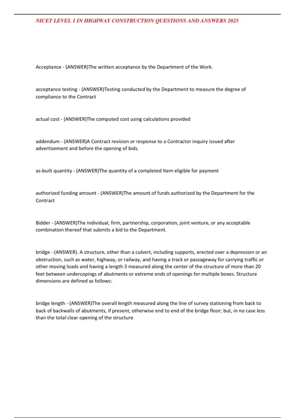 , NICET LEVEL 1 IN HIGHWAY CONSTRUCTION QUESTIONS AND ANSWERS 2025