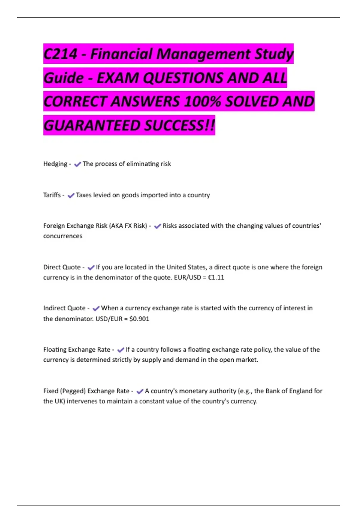 C214 - Financial Management Study Guide - EXAM QUESTIONS AND ALL CORRECT ANSWERS 100% SOLVED AND GUARANTEED SUCCESS!!