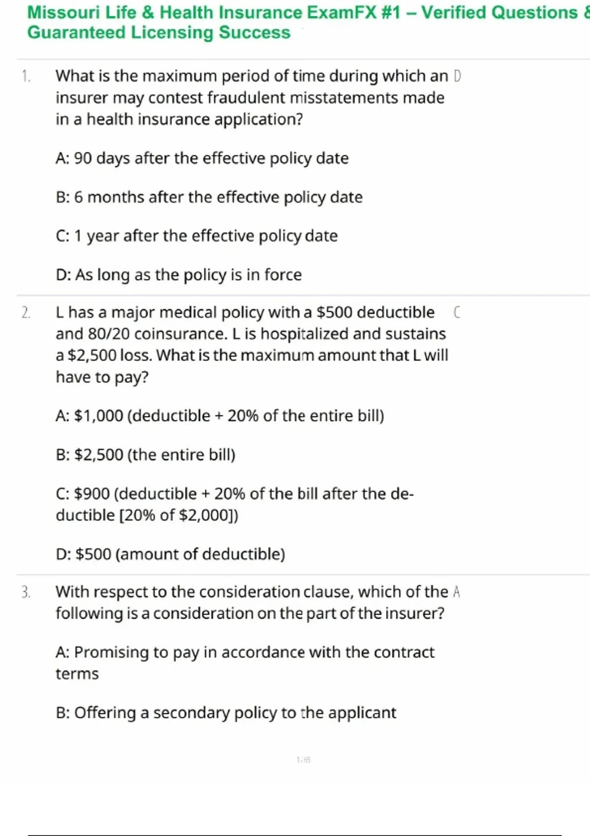 Pass your Missouri Life & Health Insurance Exam with confidence using this ExamFX-based study guide, featuring verified questions, accurate answers, and detailed explanations. Covering all key exam topics — including policy provisions, underwriting, annuities, health insurance basics, and Missouri-specific regulations — this resource is designed to match the current state licensing standards. Ideal for first-time test takers and professionals renewing their license, this guide ensures complete comprehension, confidence, and guaranteed success on your Missouri insurance exam.