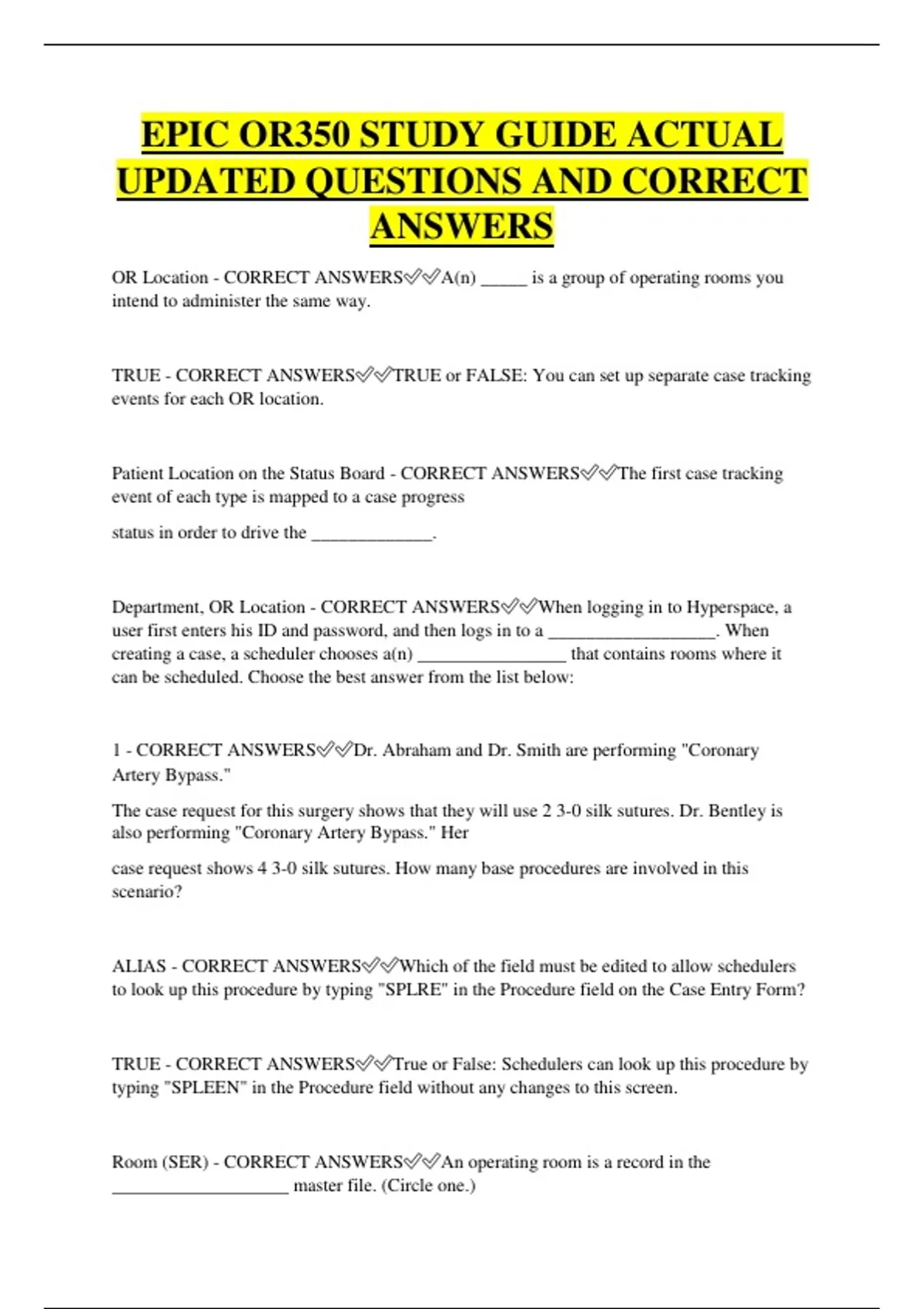 EPIC OR350 STUDY GUIDE ACTUAL UPDATED QUESTIONS AND CORRECT ANSWERS
