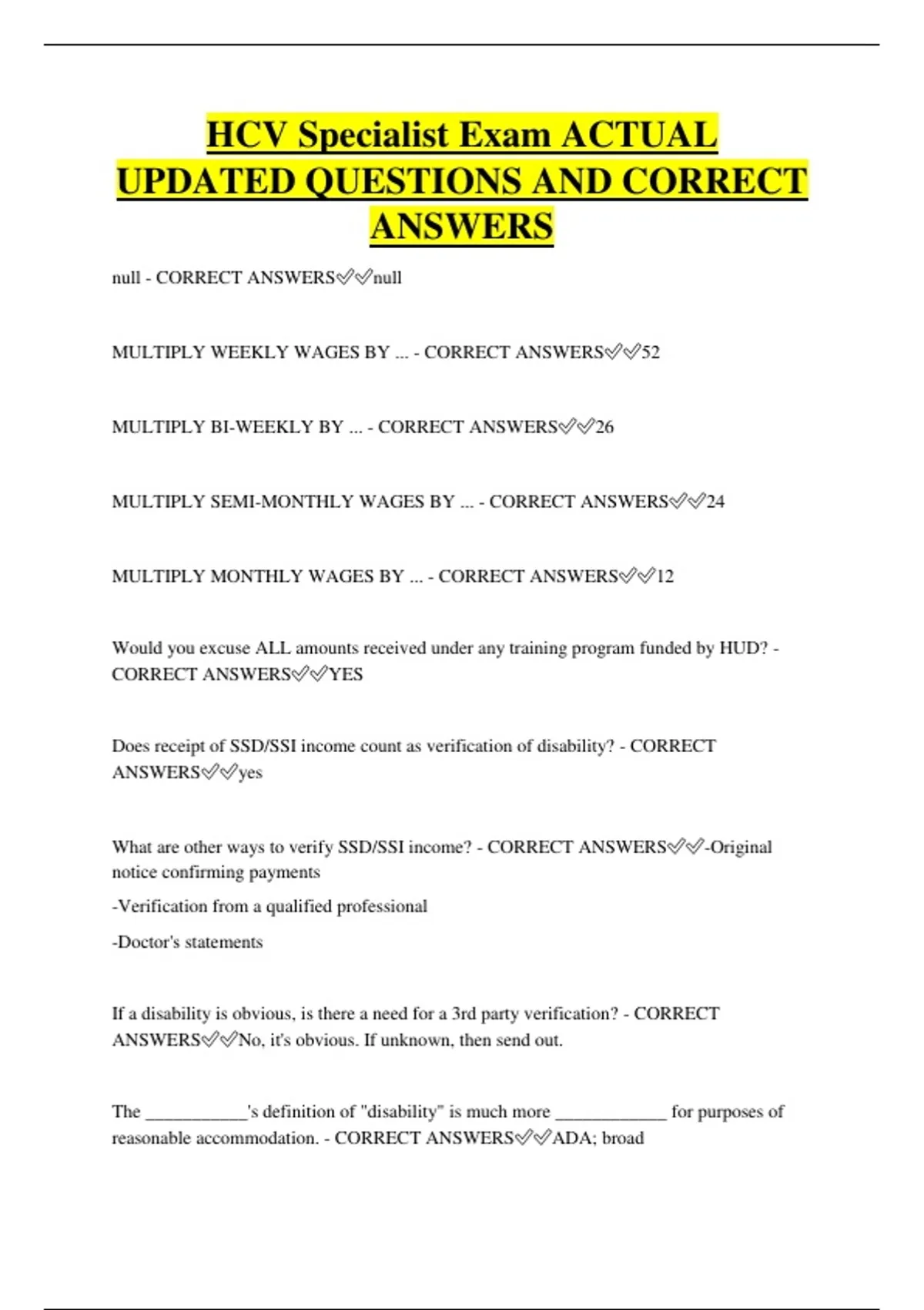 UPDATED QUESTIONS AND CORRECT