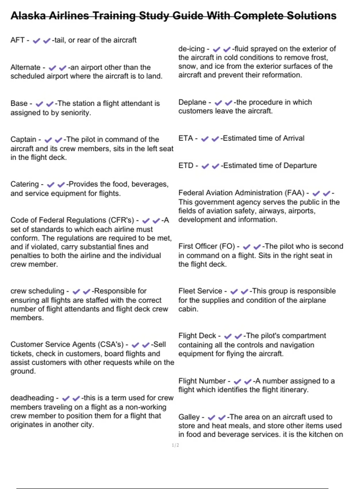 Alaska Airlines Training Study Guide With Complete Solutions