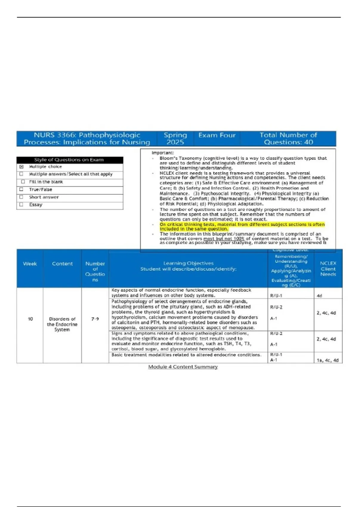 nurs 3366 exam 4 blueprint