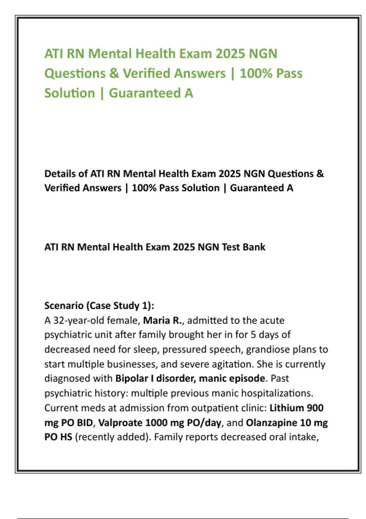 Details of ATI RN Mental Health Exam 2025 NGN Questions &