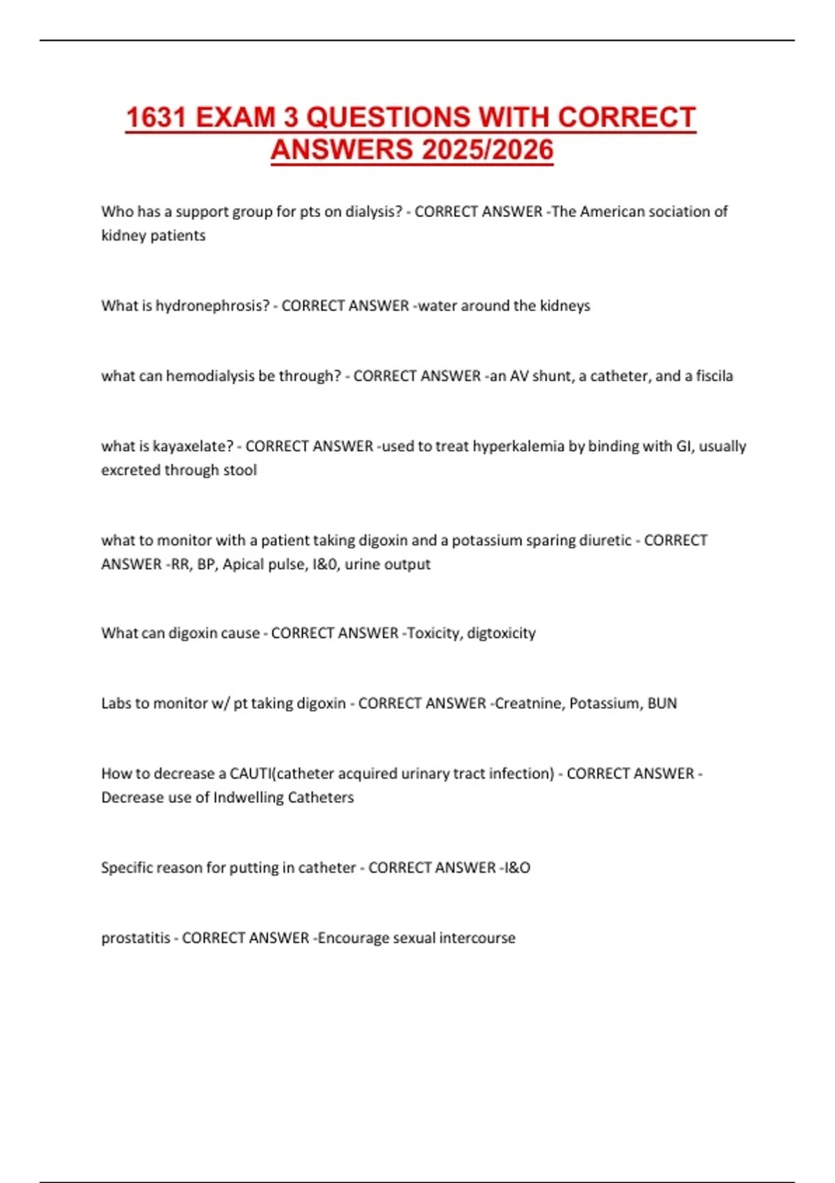 "Welcome to Excellnote! Your ultimate source for high-quality, exam-ready study materials designed to help you excel in your toughest courses and certifications. I specialize in turning complex course material into clear, structured, and verified learning resources." "My library is continually updated and curated to ensure you have the most recent and relevant materials for your academic success. You will find:" -Comprehensive Exam Elaborations: Detailed question-and-answer sets for common exams, certifications, and course assessments. -Verified Solution Manuals: Step-by-step solutions for textbooks and complex problem sets. -Subject-Specific Question Banks: Extensive collections of practice questions with 100% verified answers for subjects like Nursing (HESI, ATI, NCLEX), Finance (CFA), Accounting, IT, and more. -In-Depth Study Guides: Focused summaries and revision notes created from official course materials and recommended texts. -Package Deals: High-value bundles combining multiple documents (like question banks and study guides) for maximum preparation and savings. I as Excellnote am committed to quality and academic rigor:A+ Grade Focus: Every document is meticulously prepared and cross-referenced to target the knowledge required for an A+ grade or a guaranteed exam pass.Timeliness & Accuracy: I prioritize providing the latest versions of study materials, often labeling them with the current academic year (e.g., 2025/2026) to ensure you are studying the most up-to-date content.Structured for Success: Documents feature clear formatting, logical organization, and are designed for quick and effective review, saving you countless hours of preparation time.Buyer Trust & Reputation: I am committed to a high standard of service, as reflected by positive reviews and repeat customers. Your satisfaction is my top priority. "Ready to simplify your study process and boost your grades? Click 'View All Documents' to browse my complete catalog. If you have any questions about a specific document, course, or exam, please feel free to send me a message. I am here to help you achieve academic excellence."