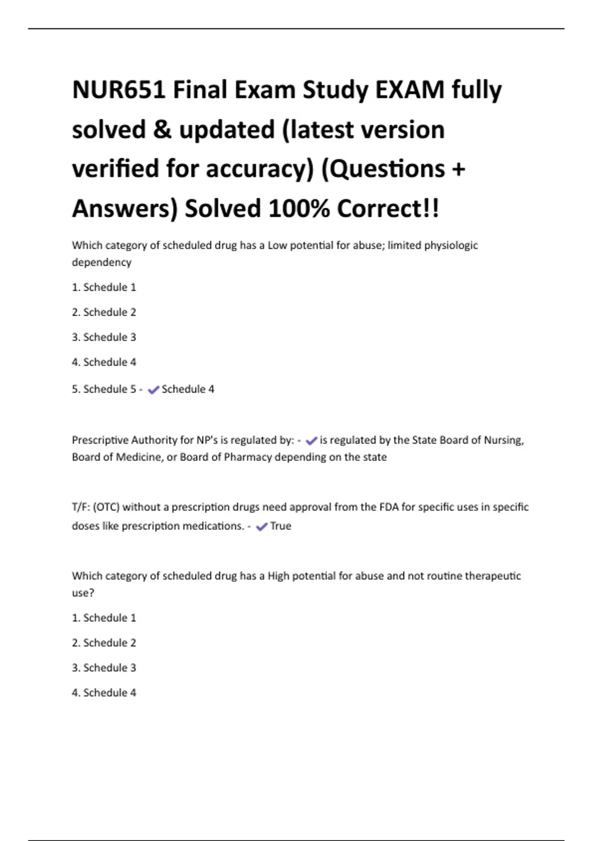 verified for accuracy) (Questions +