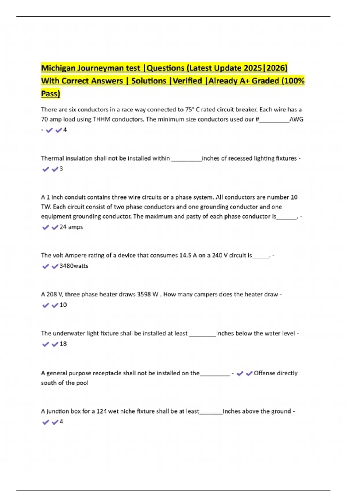 Michigan Journeyman test |Questions (Latest Update 2025|2026) With Correct Answers | Solutions |Verified |Already A+ Graded (100% Pass)