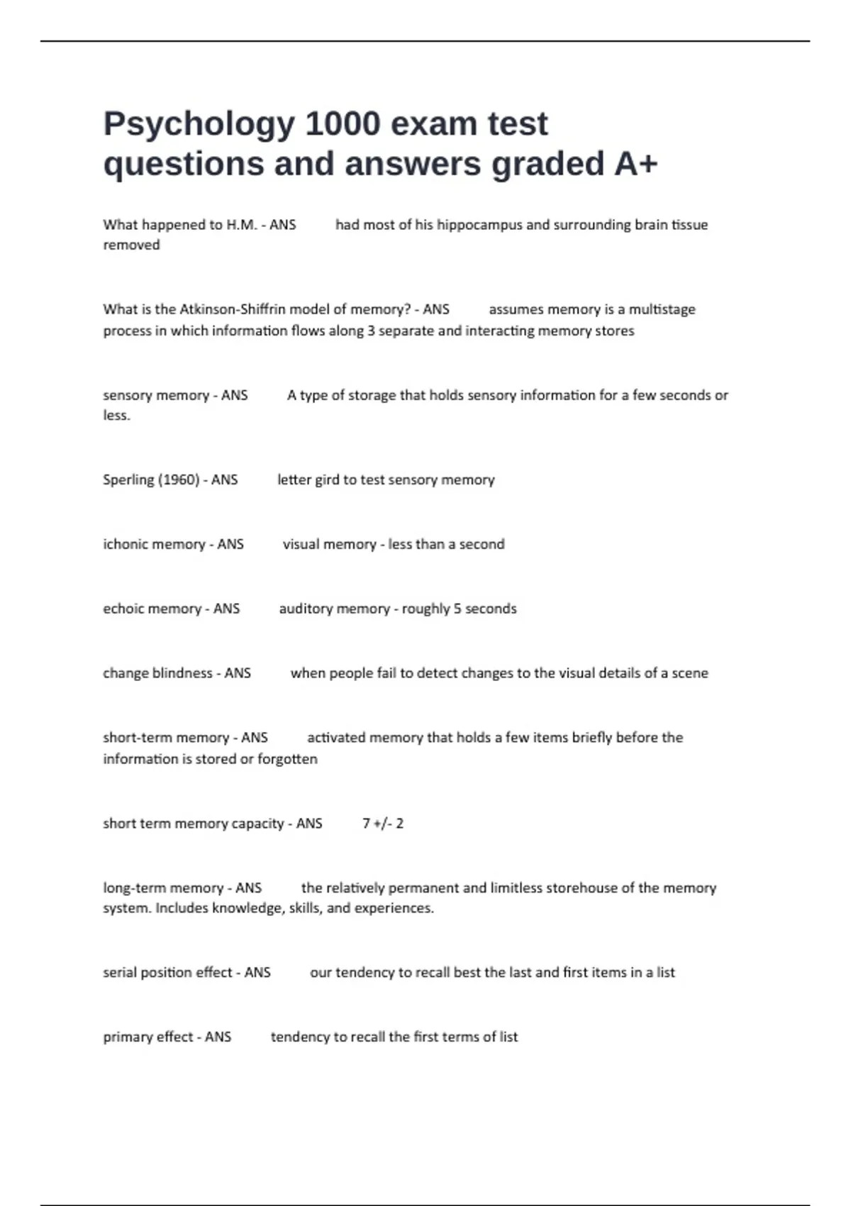 sensory memory - ANS✅✅A type of storage that holds sensory information for a few seconds or
