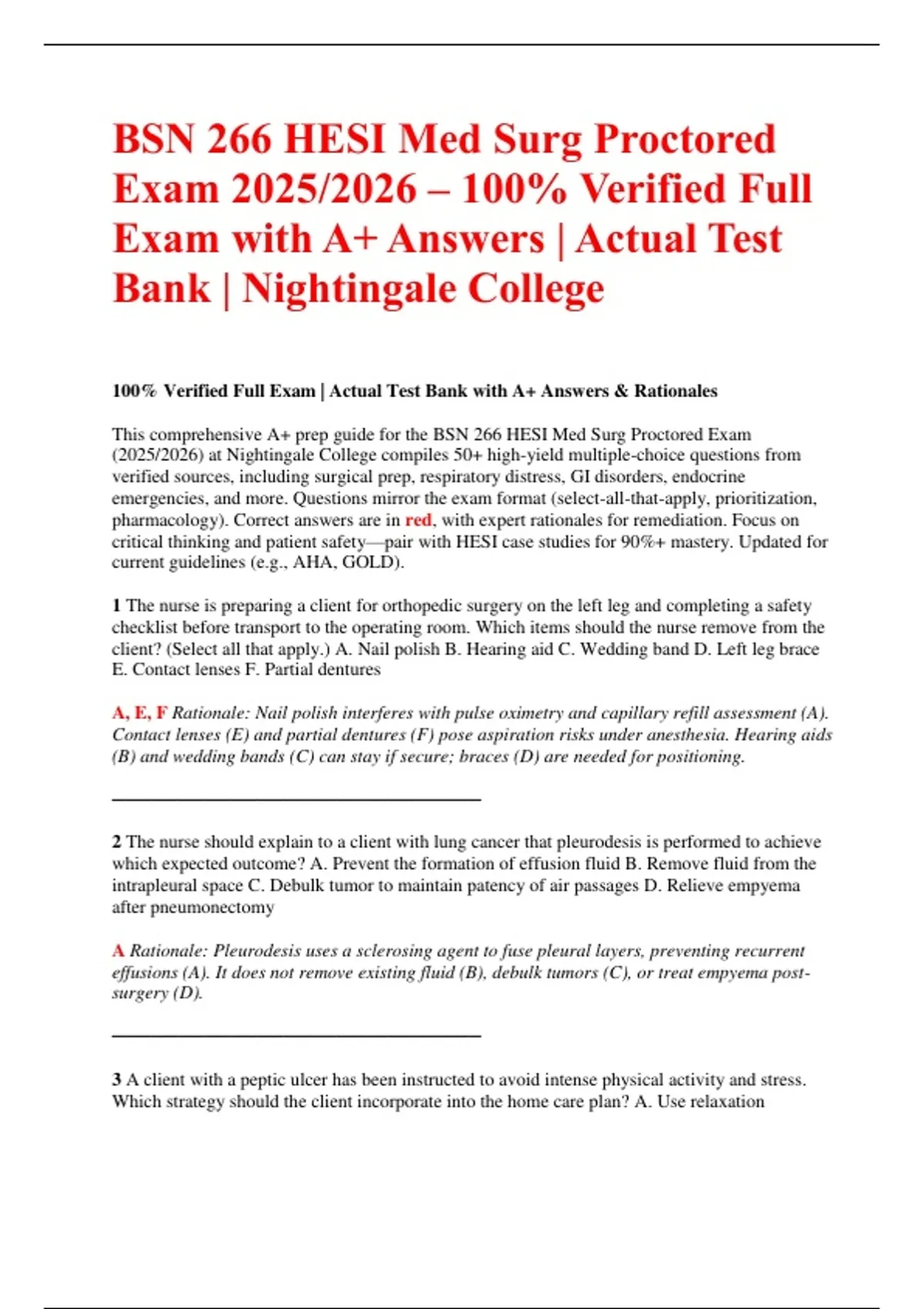 (2025/2026) at Nightingale College compiles 50+ high-yield multiple-choice questions from