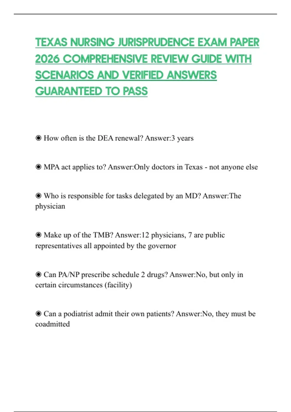 ◉ MPA act applies to? Answer:Only doctors in Texas - not anyone else