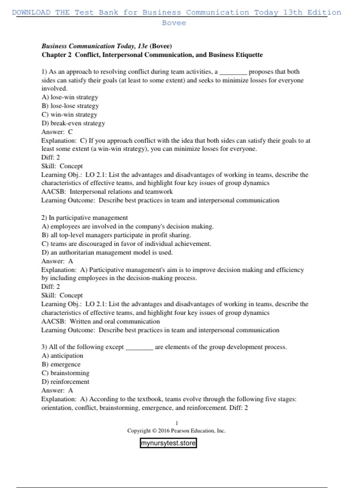 , DOWNLOAD THE Test Bank for Business Communication Today 13th Edition