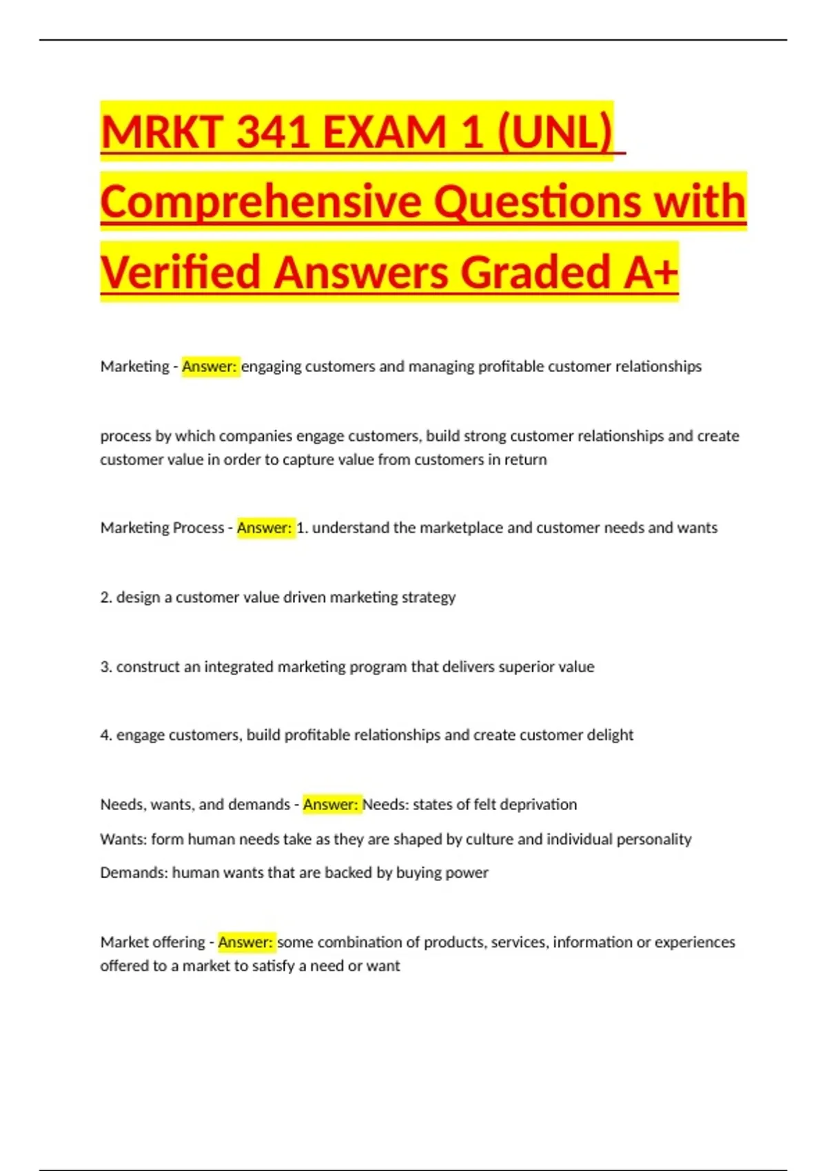 MRKT 341 EXAM 1 (UNL) Comprehensive Questions with Verified Answers Graded A+