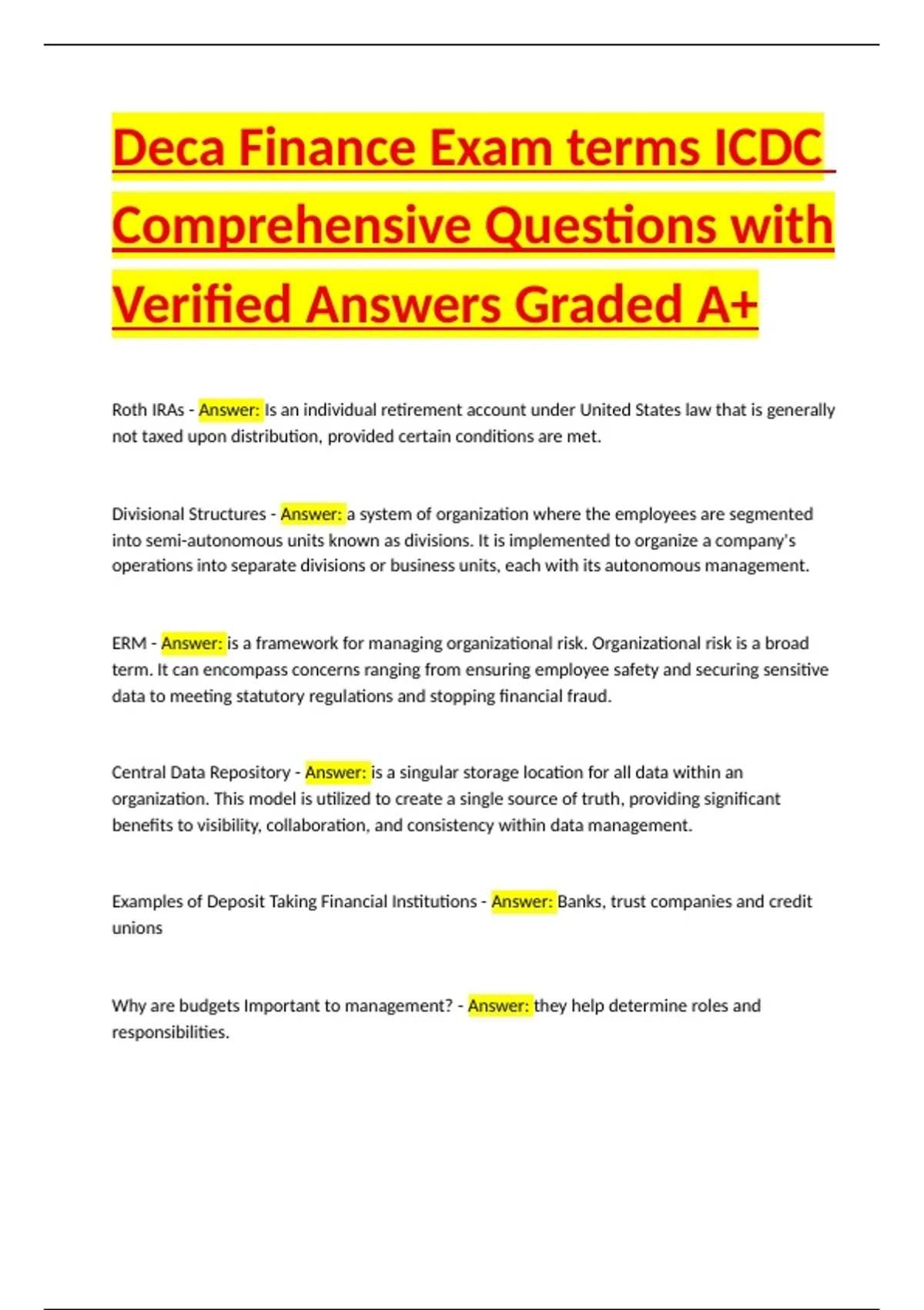 Verified Answers Graded A+
