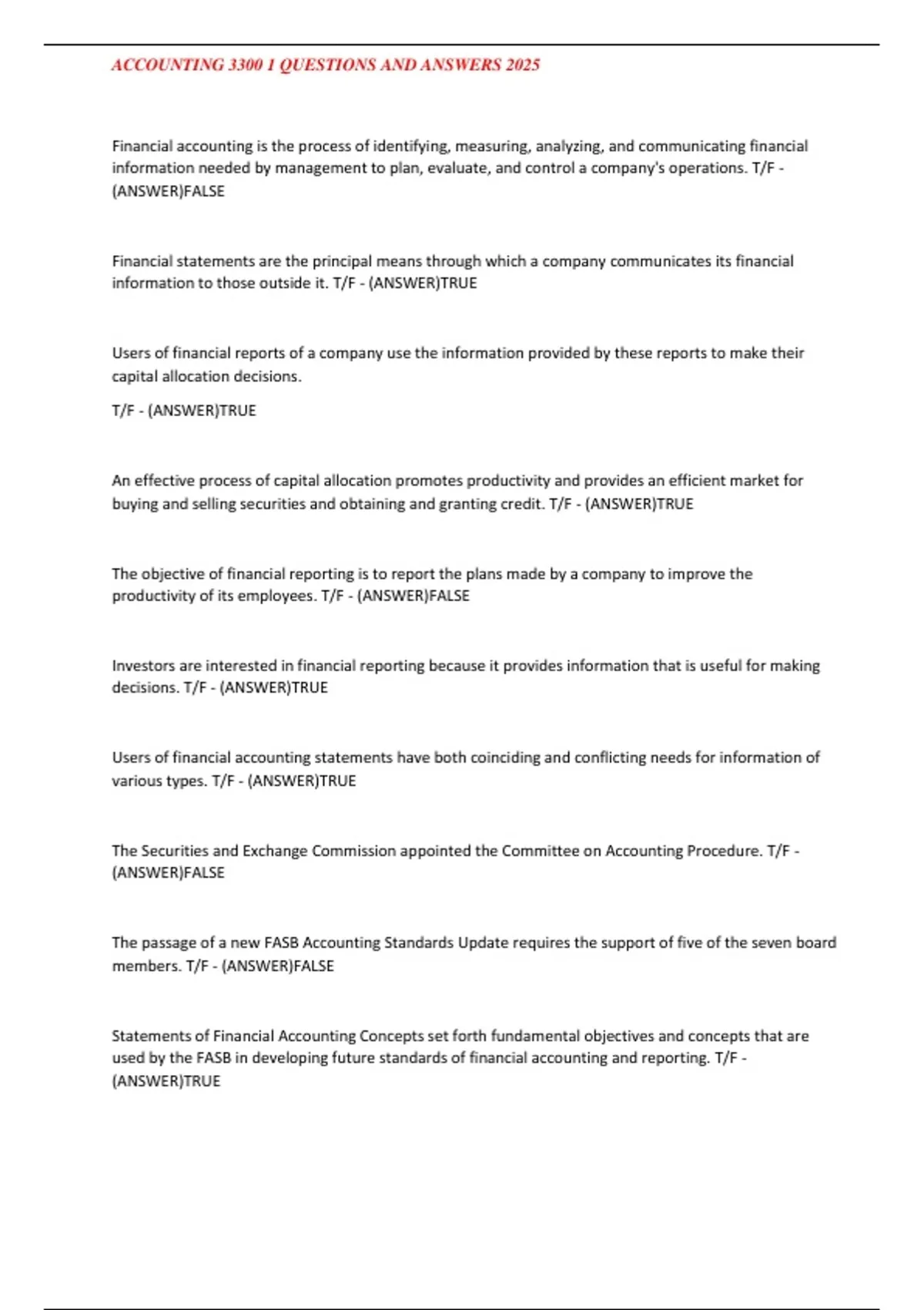 ACCOUNTING 3300 1 QUESTIONS AND ANSWERS 2025