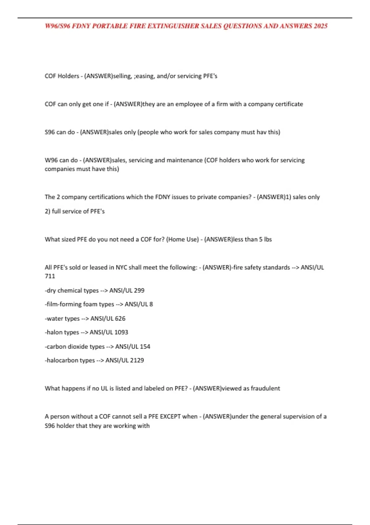 W96/S96 FDNY PORTABLE FIRE EXTINGUISHER SALES QUESTIONS AND ANSWERS 2025