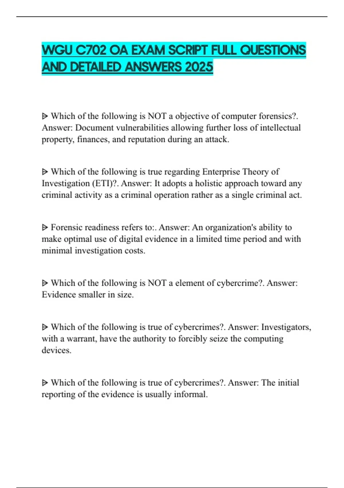 WGU C702 OA EXAM SCRIPT FULL QUESTIONS