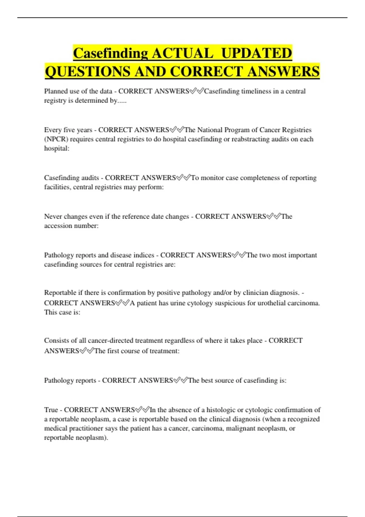 Pathology reports - CORRECT ANSWERS✅✅The best source of casefinding is: