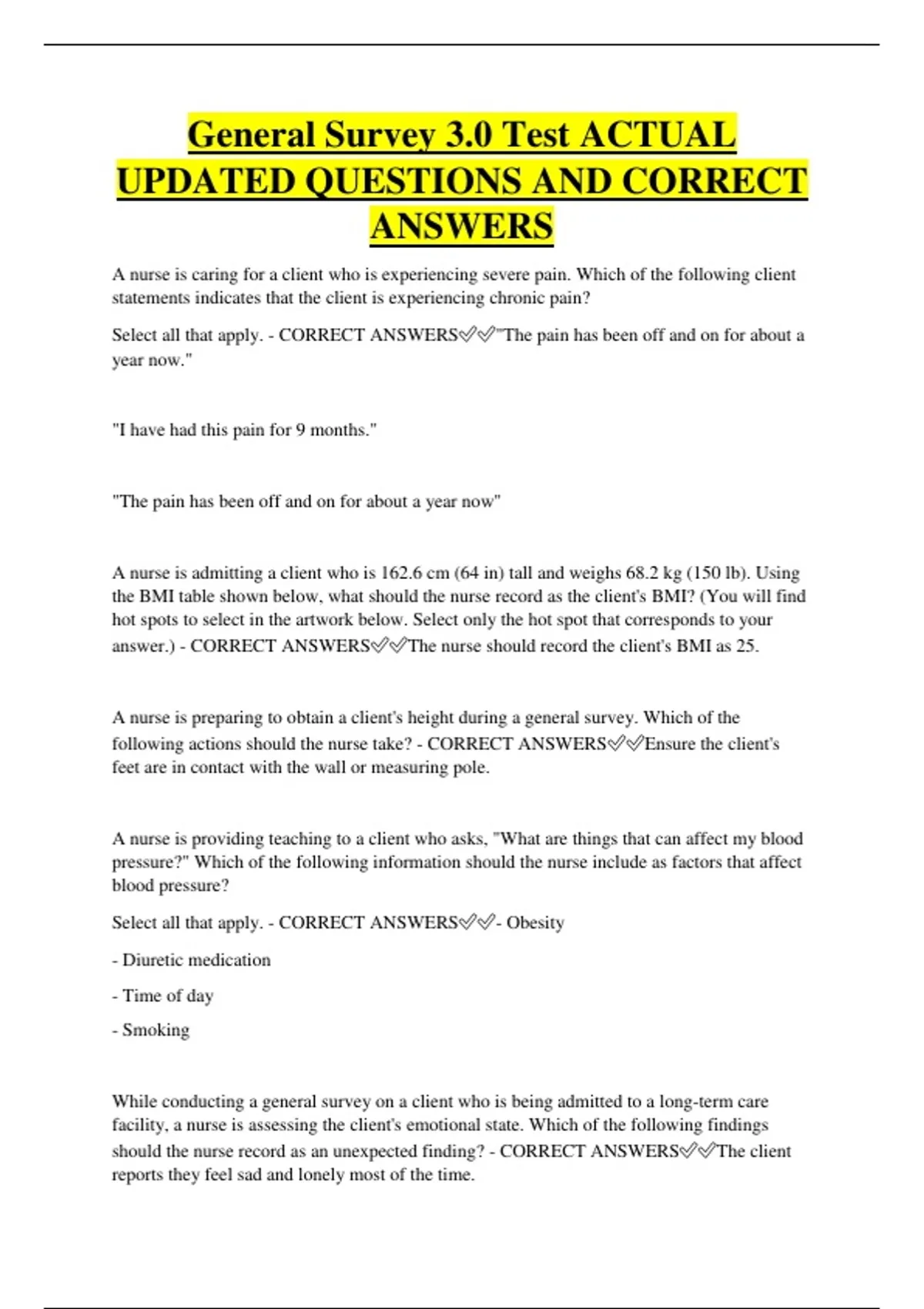 answer.) - CORRECT ANSWERS✅✅The nurse should record the client's BMI as 25.