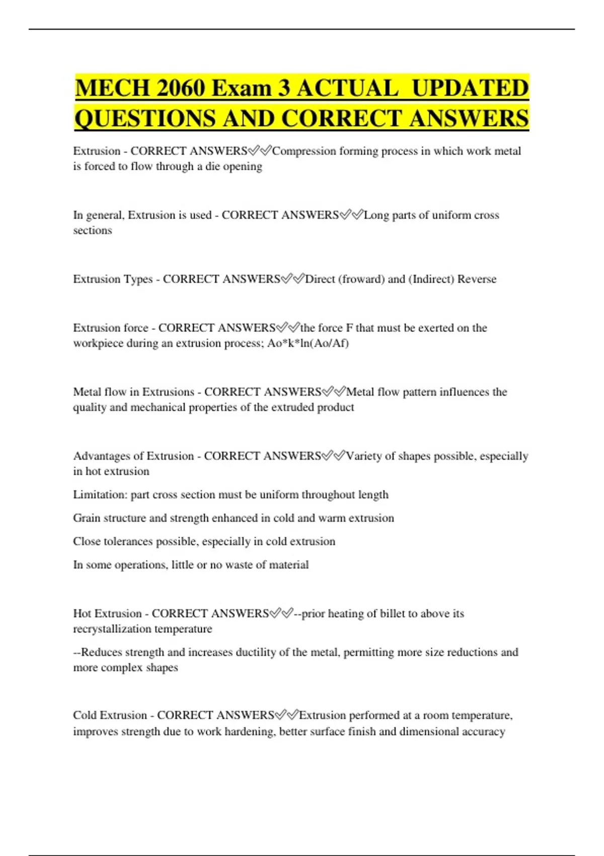 Extrusion Defects - CORRECT ANSWERS✅✅-surface cracking