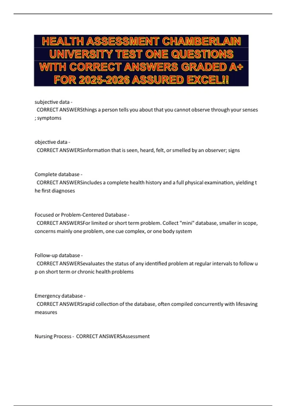 NursingcProcessc-ccCORRECTcANSWERSAssessment