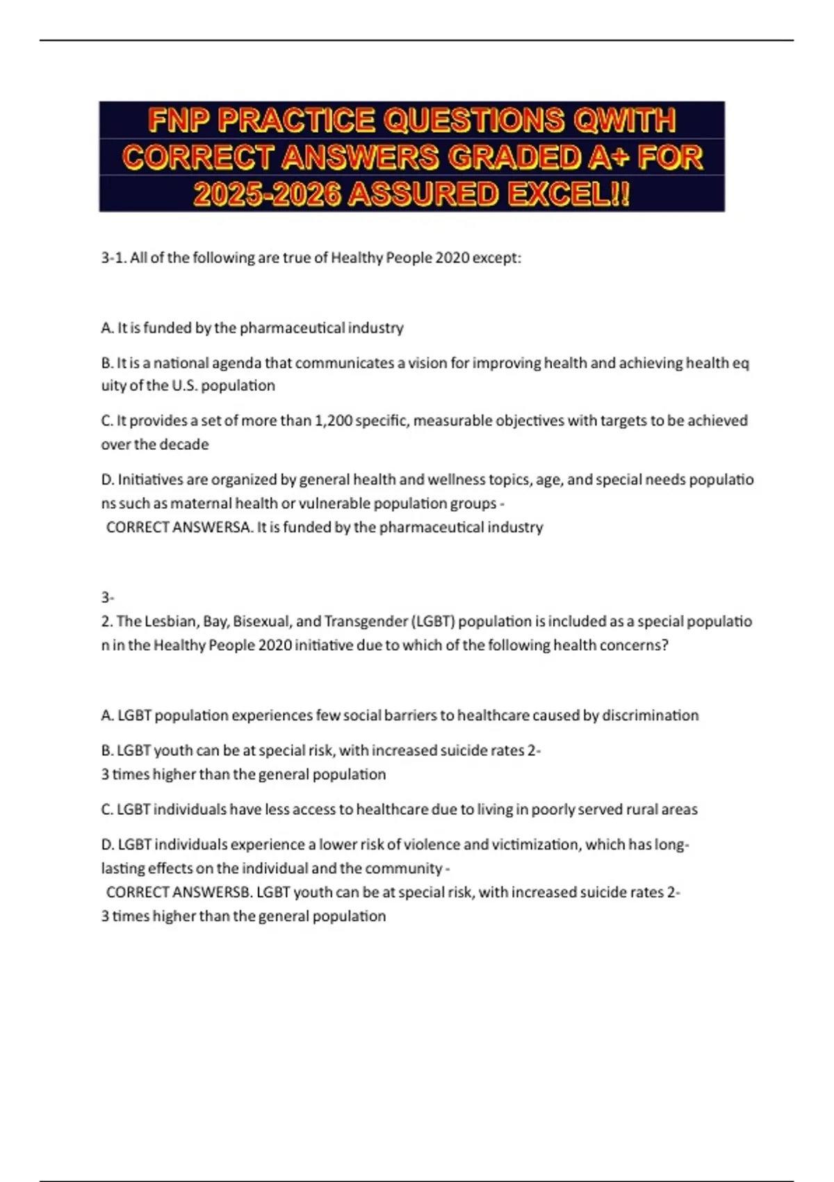 ssCORRECTsANSWERSB.sLGBTsyouthscansbesatsspecialsrisk,swithsincreasedssuicidesratess2-