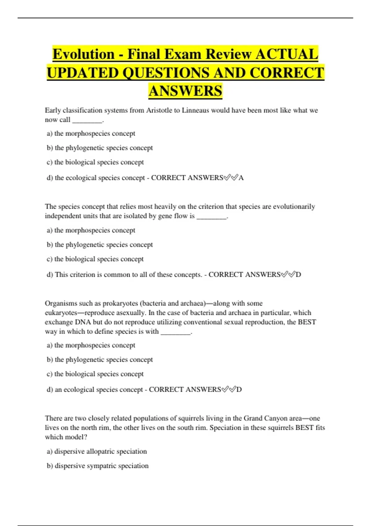 d) the ecological species concept - CORRECT ANSWERS✅✅A