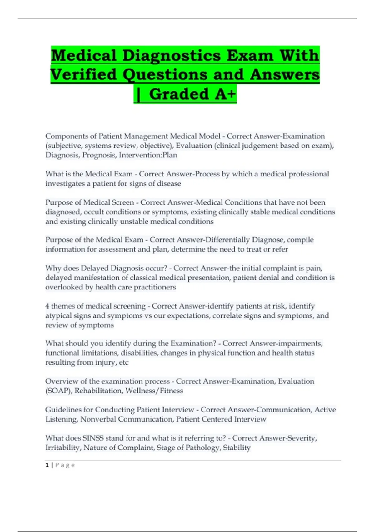 Medical Diagnostics Exam With Verified Questions and Answers | Graded A+
