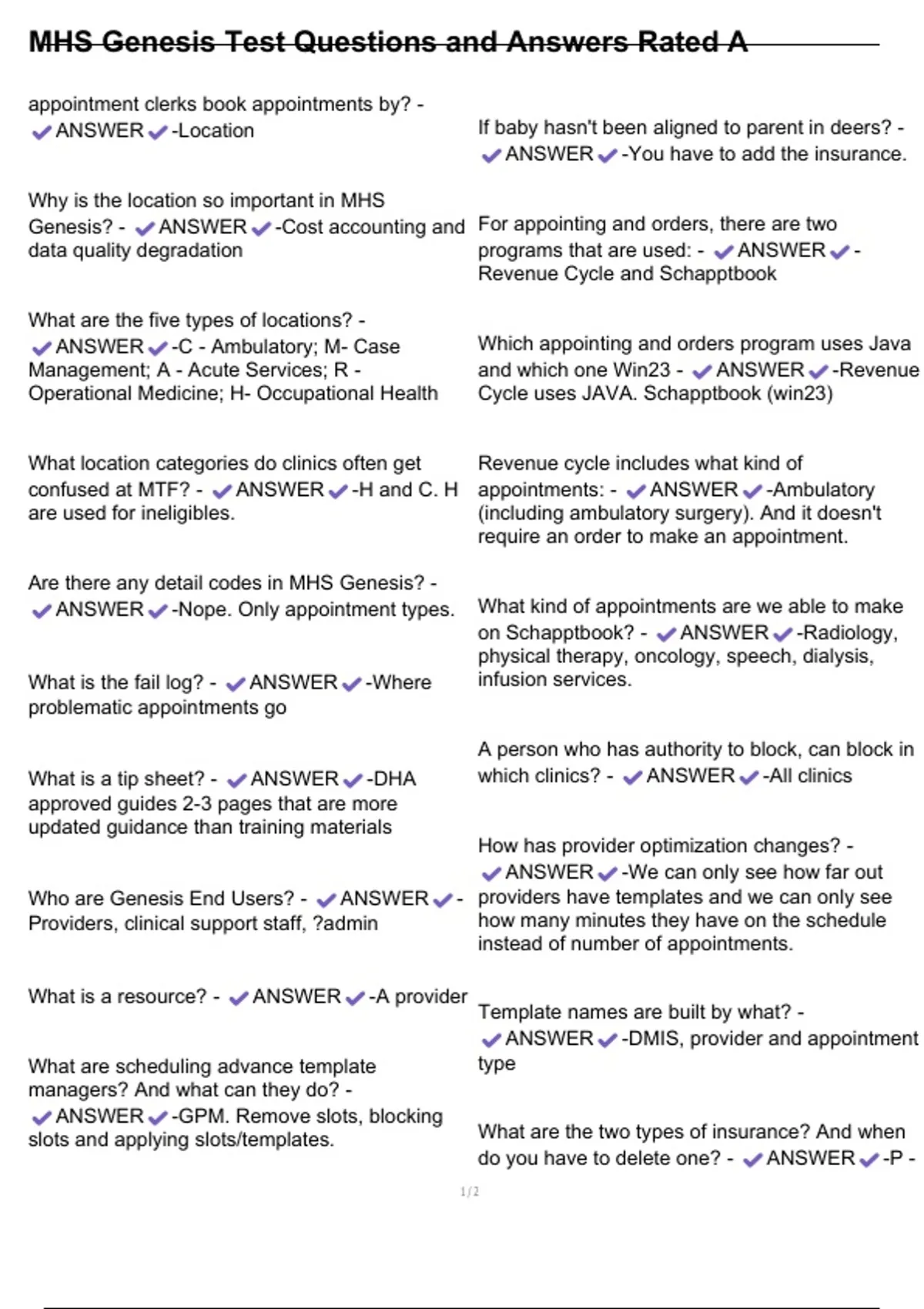 MHS Genesis Test Questions and Answers Rated A