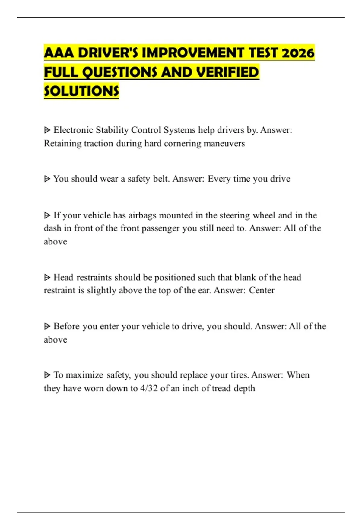 ⩥ You need to ensure your tires always. Answer: Both A and B