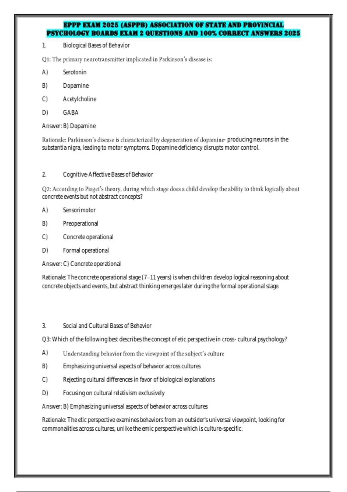 , EPPP EXAM 2025 (ASPPB) ASSOCIATION OF STATE AND PROVINCIAL