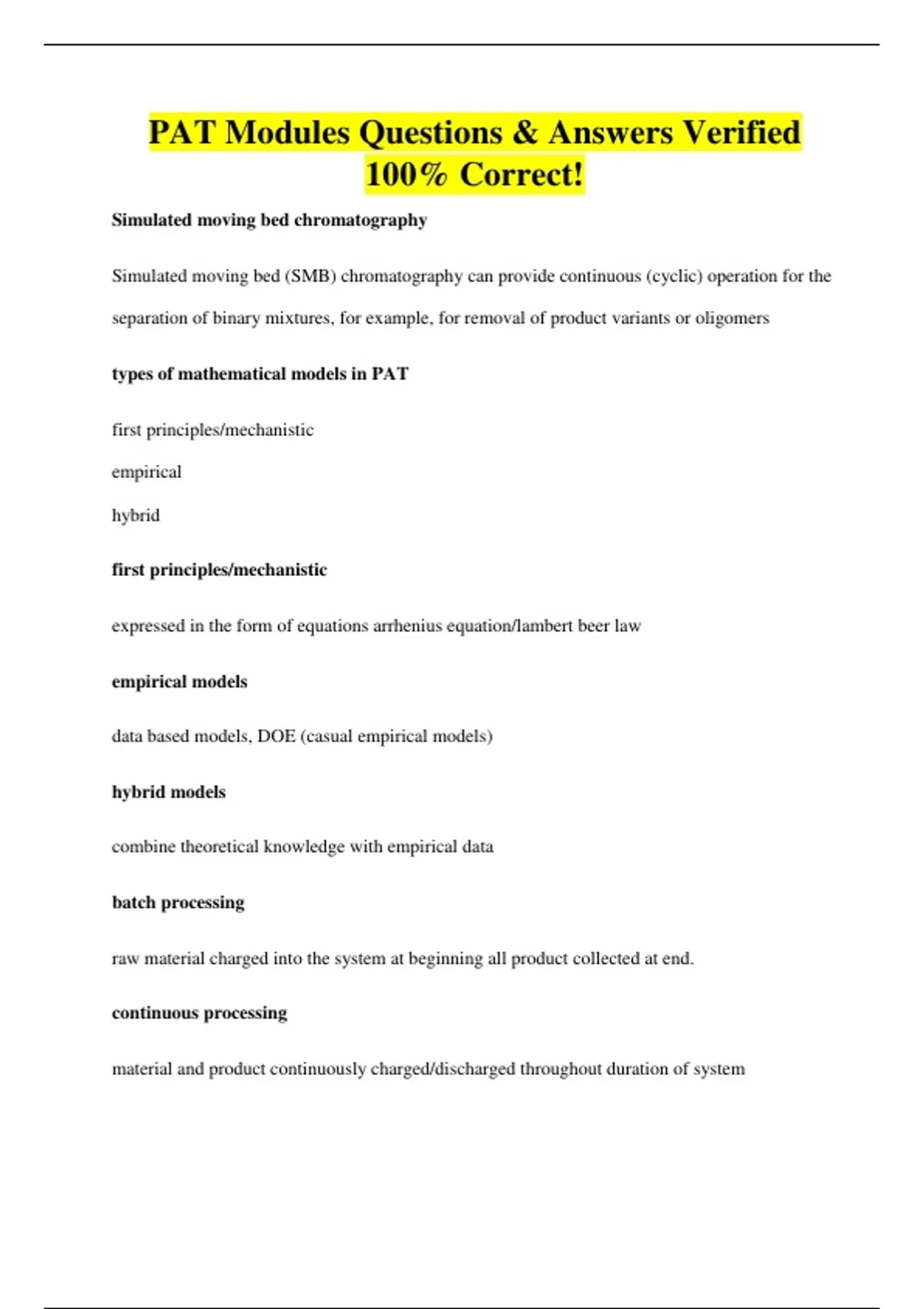 PAT Modules Questions & Answers Verified
