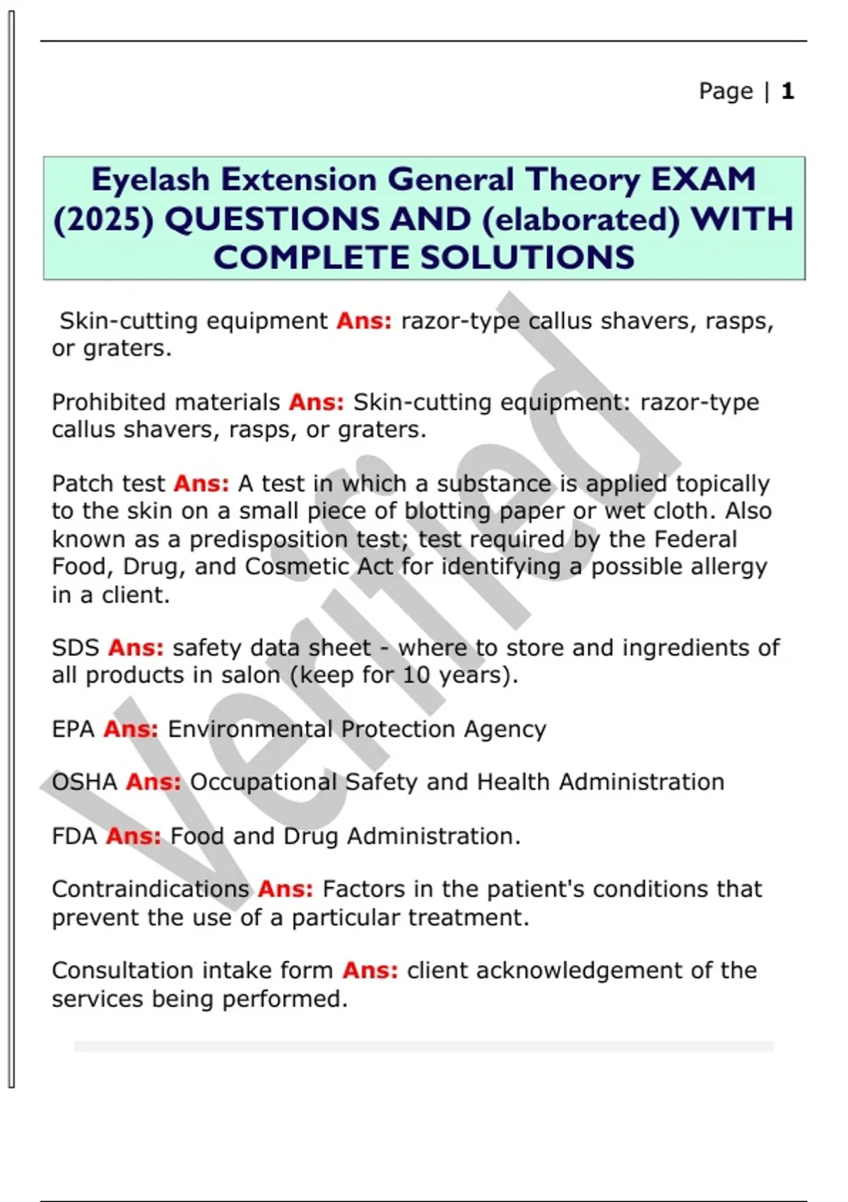 Eyelash Extension General Theory EXAM