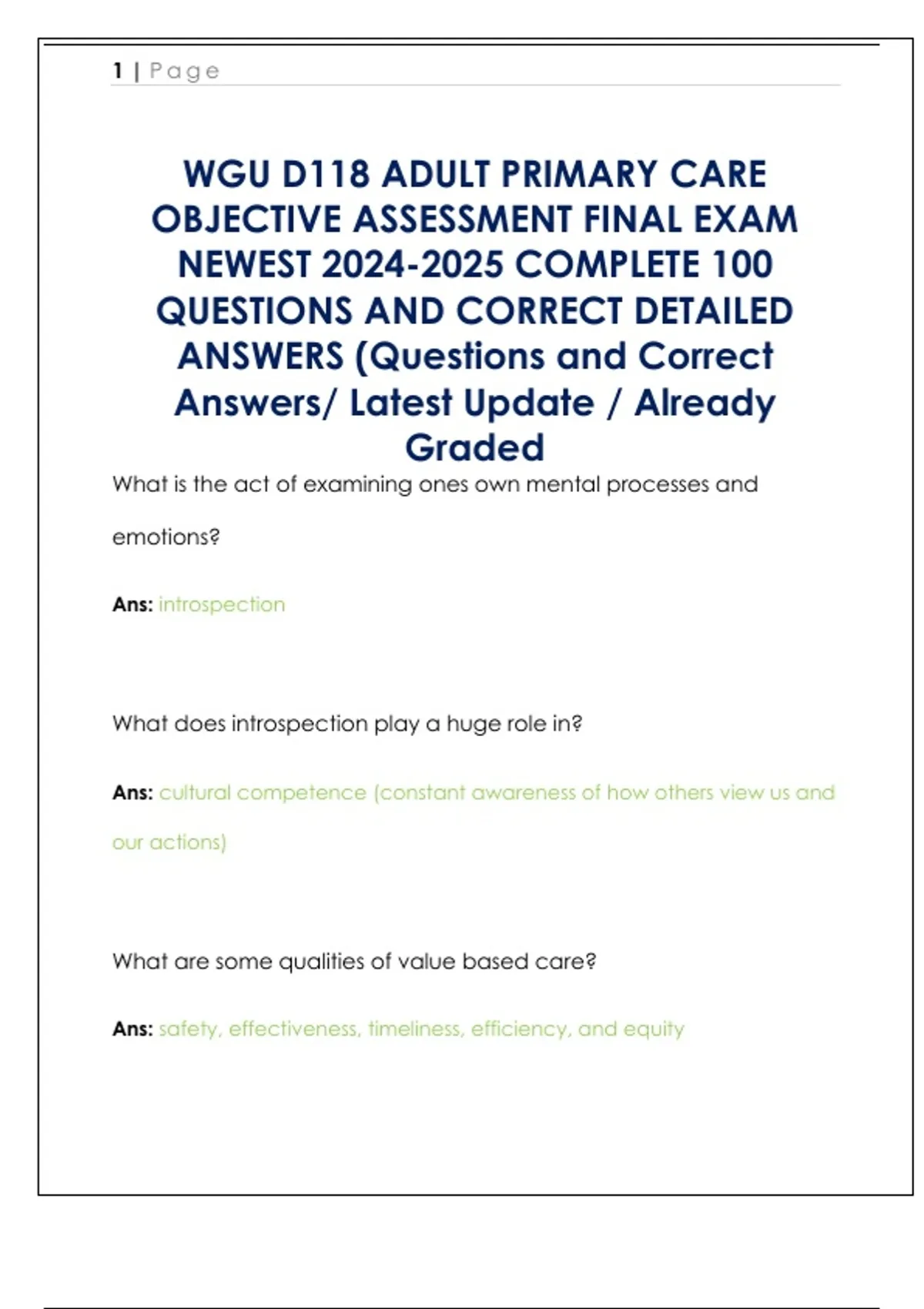 WGU D118 ADULT PRIMARY CARE