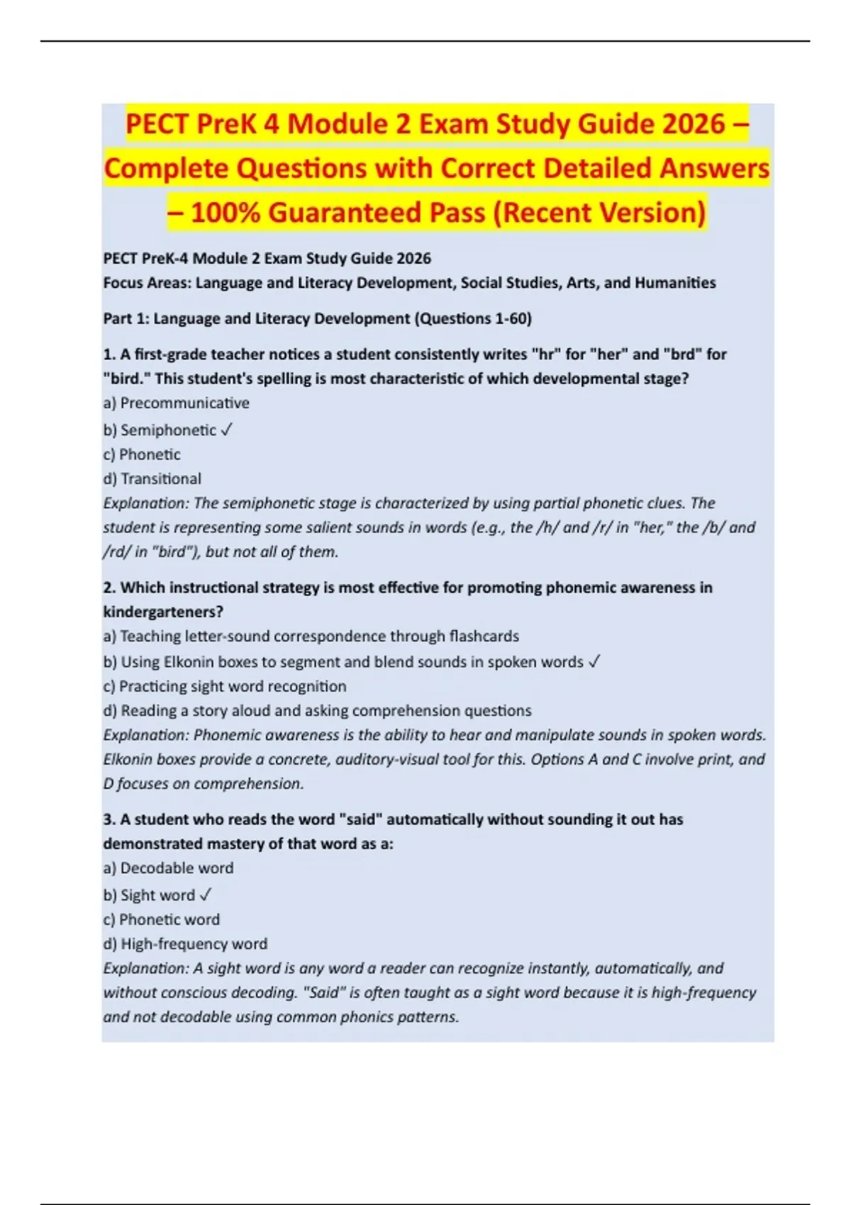 Part 1: Language and Literacy Development (Questions 1-60)