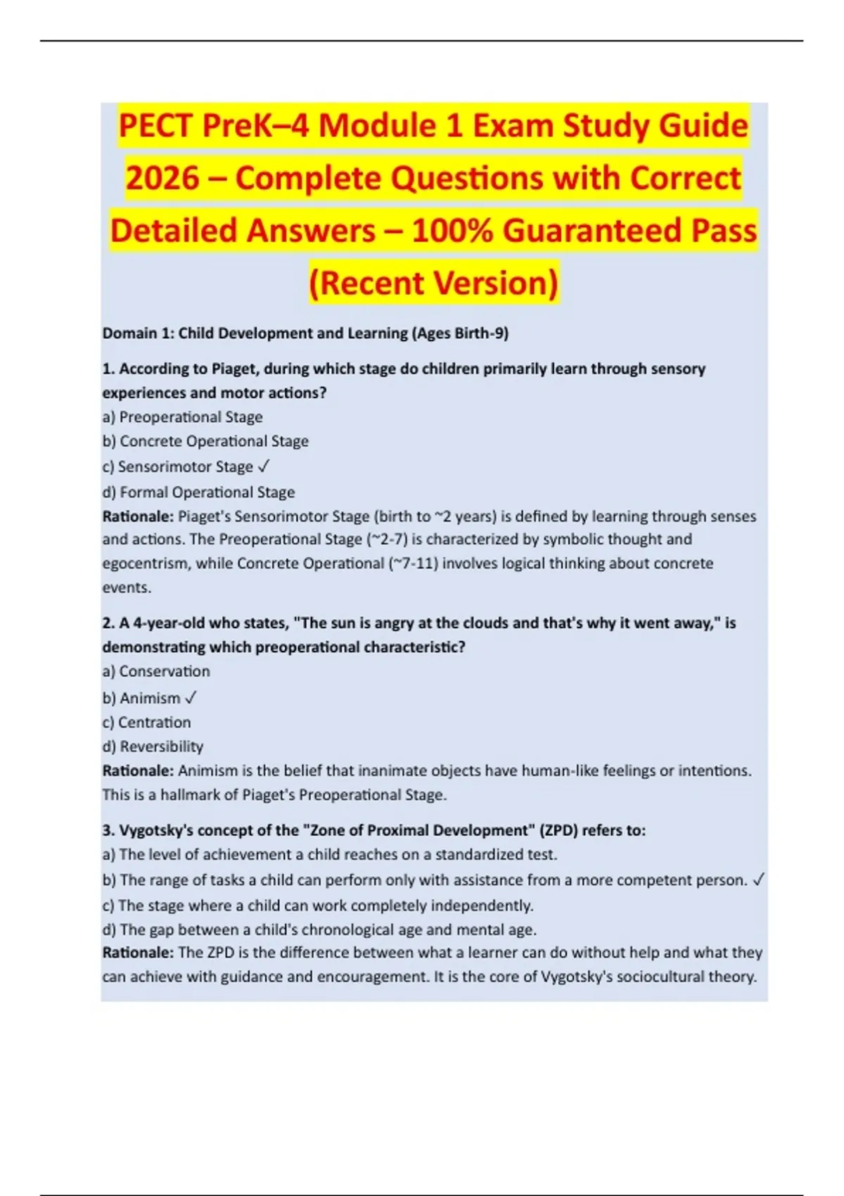 PECT PreK–4 Module 1 Exam Study Guide 2026 – Complete Questions with Correct Detailed Answers – 100% Guaranteed Pass (Recent Version)