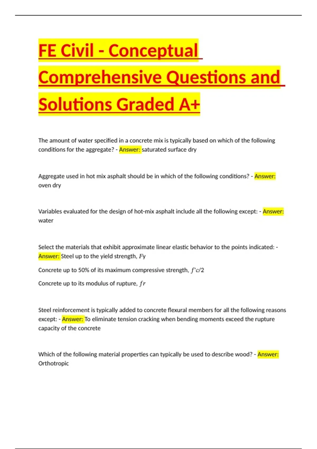 Answer: Steel up to the yield strength, 𝐹y