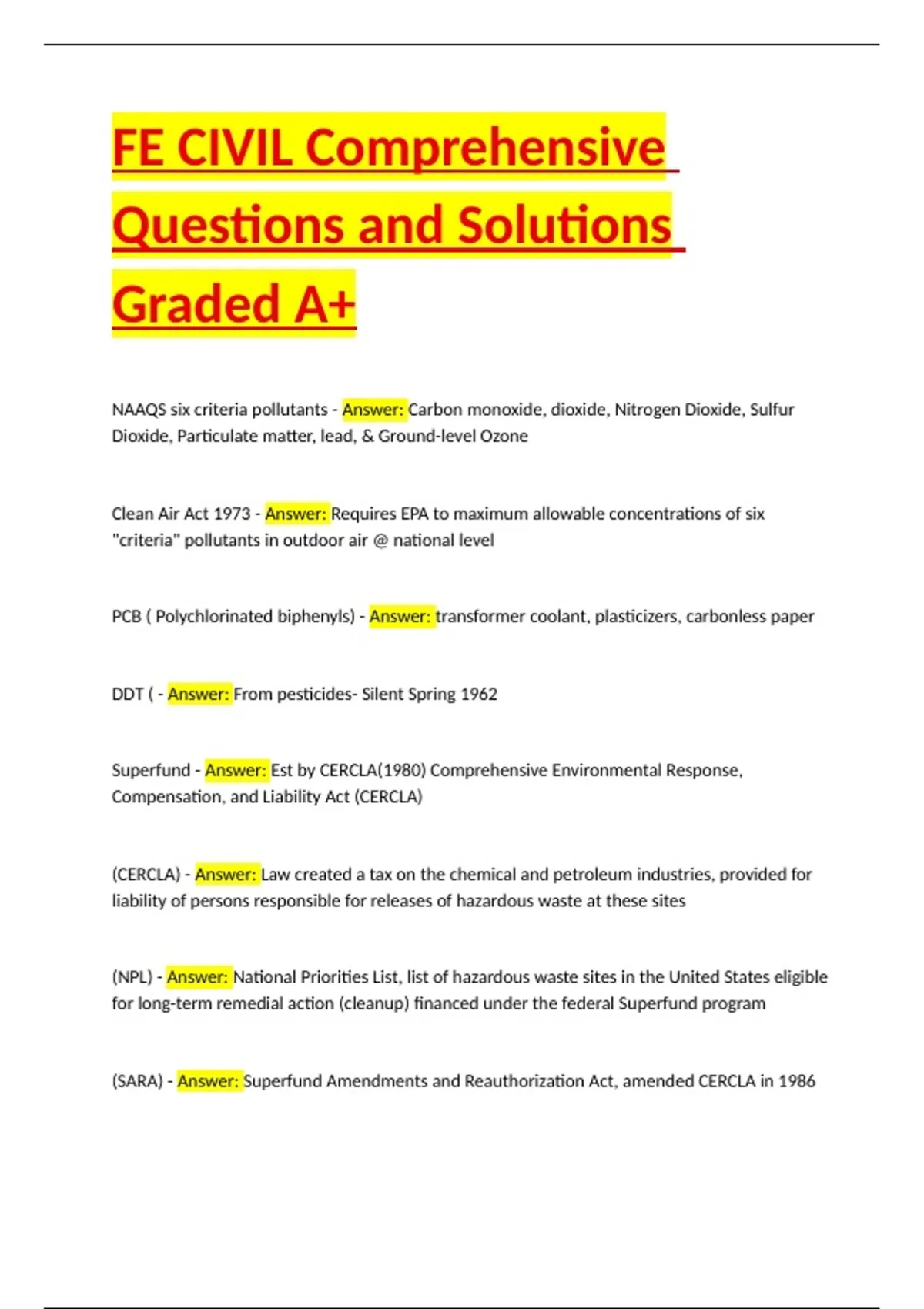 (SARA) - Answer: Superfund Amendments and Reauthorization Act, amended CERCLA in 1986