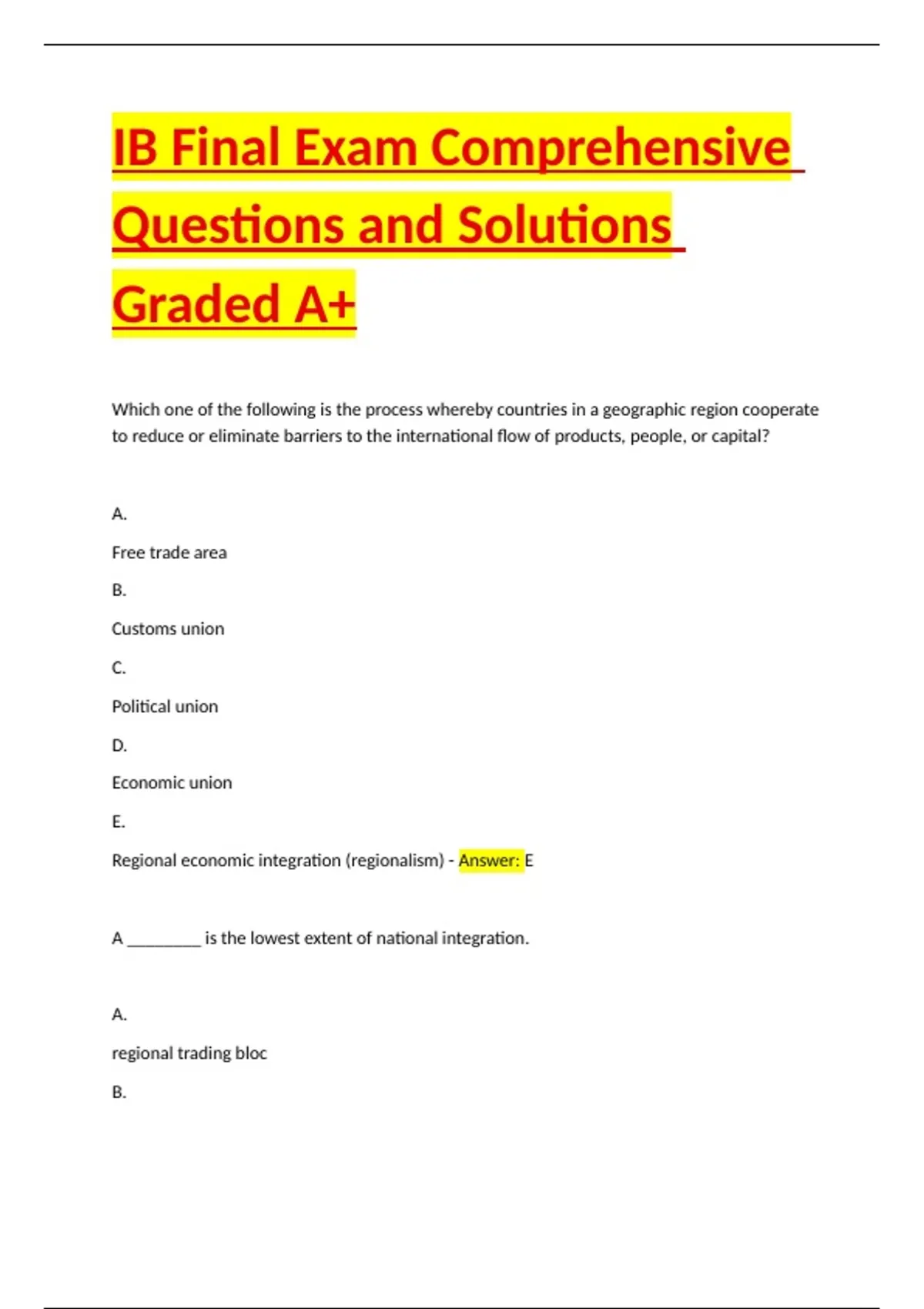 IB Final Exam Comprehensive Questions and Solutions Graded A+