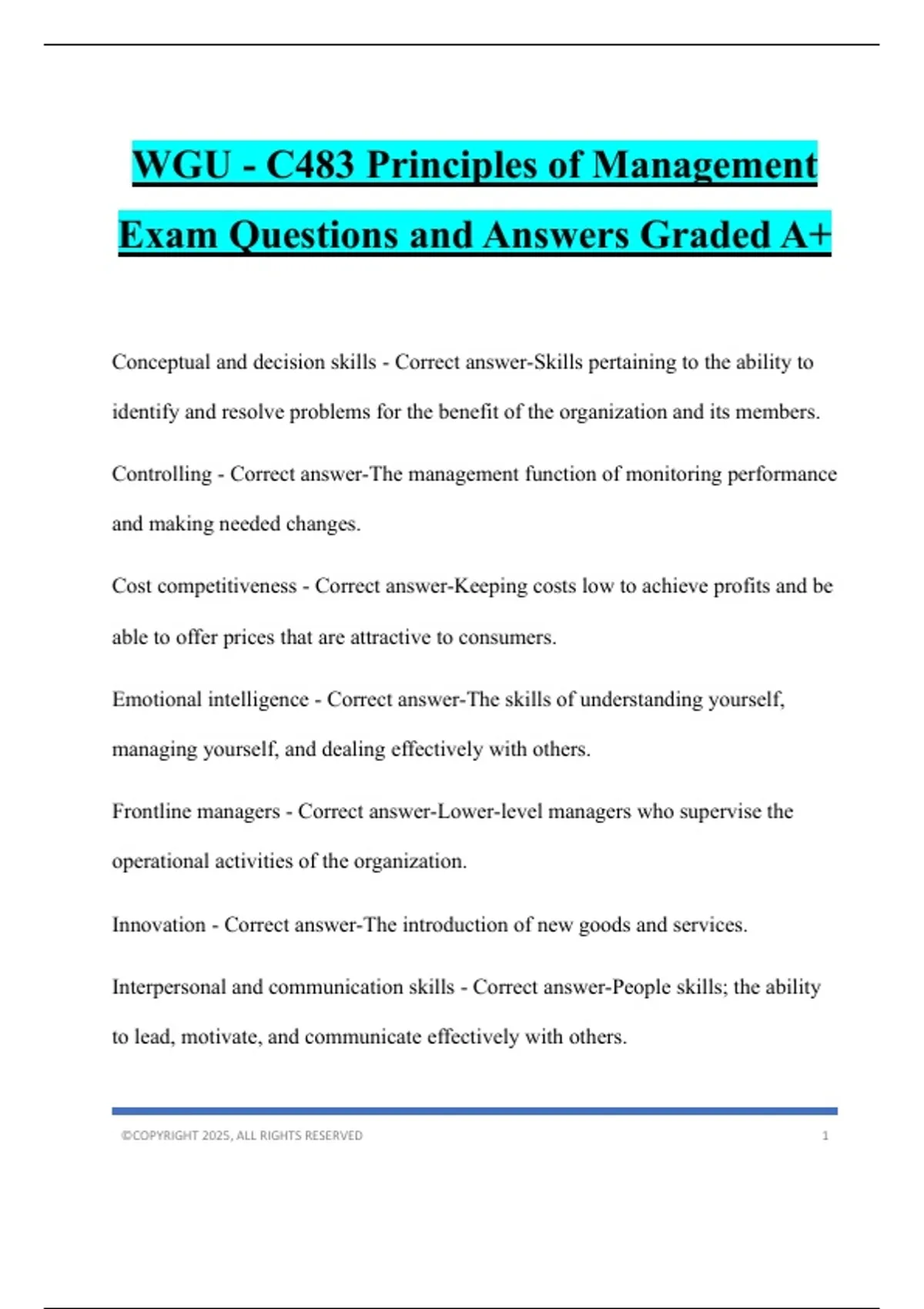 WGU - C483 Principles of Management Exam Questions and Answers Graded A+