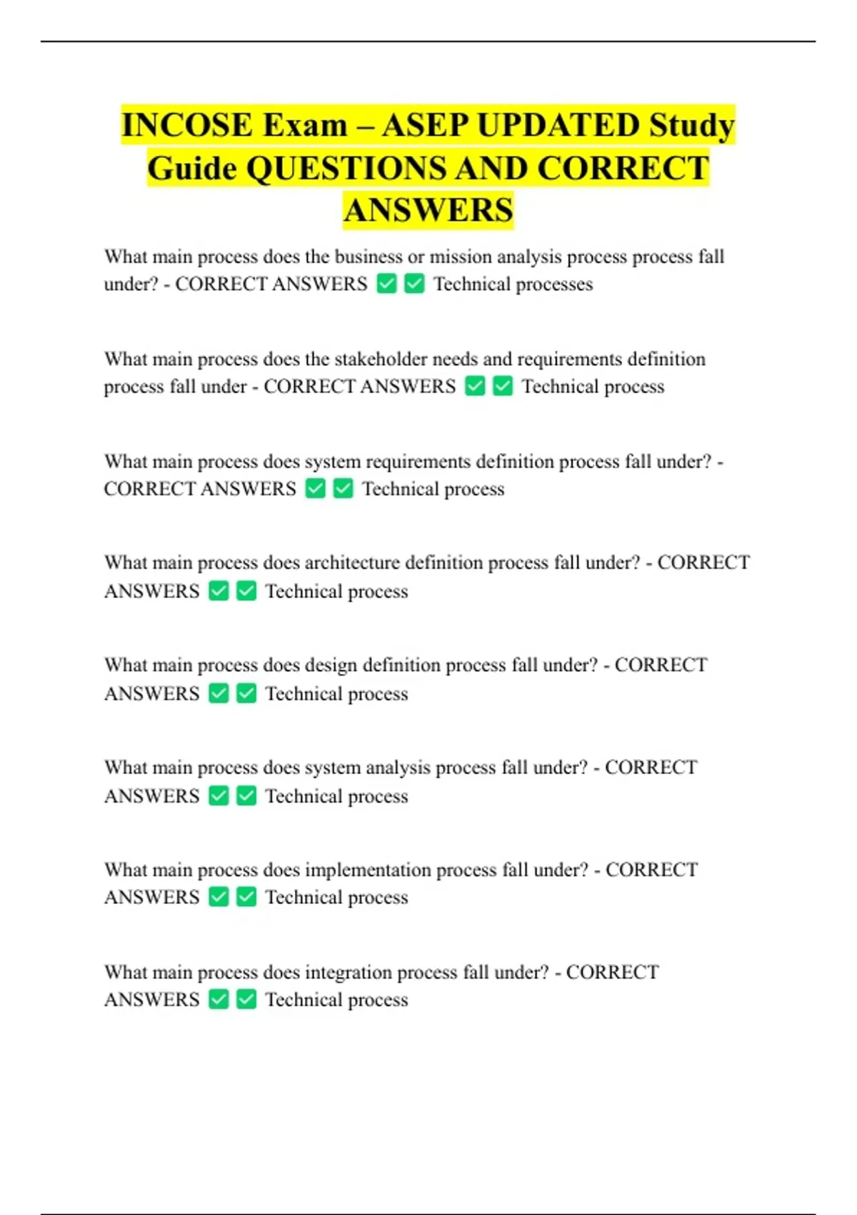 CORRECT ANSWERS Technical management process