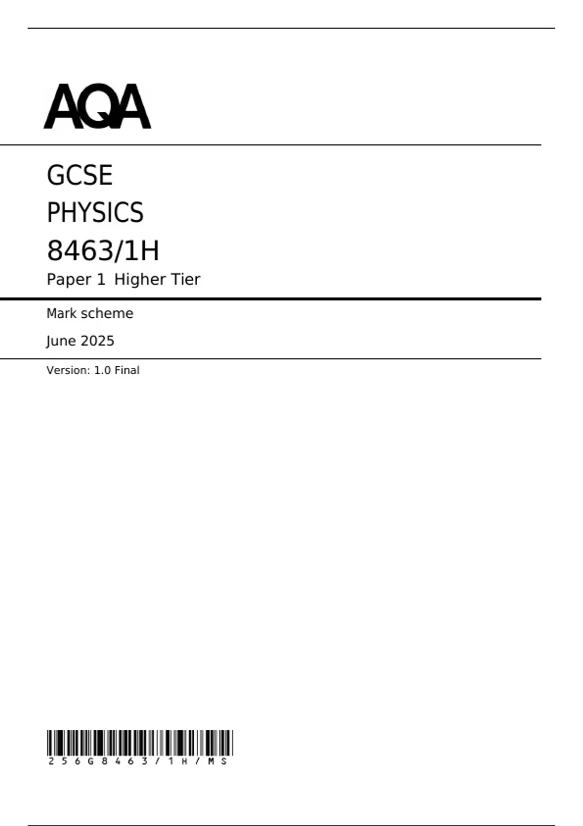 AQA GCSE PHYSICS Paper 1 MARK SCHEME 2025 (8462/1H