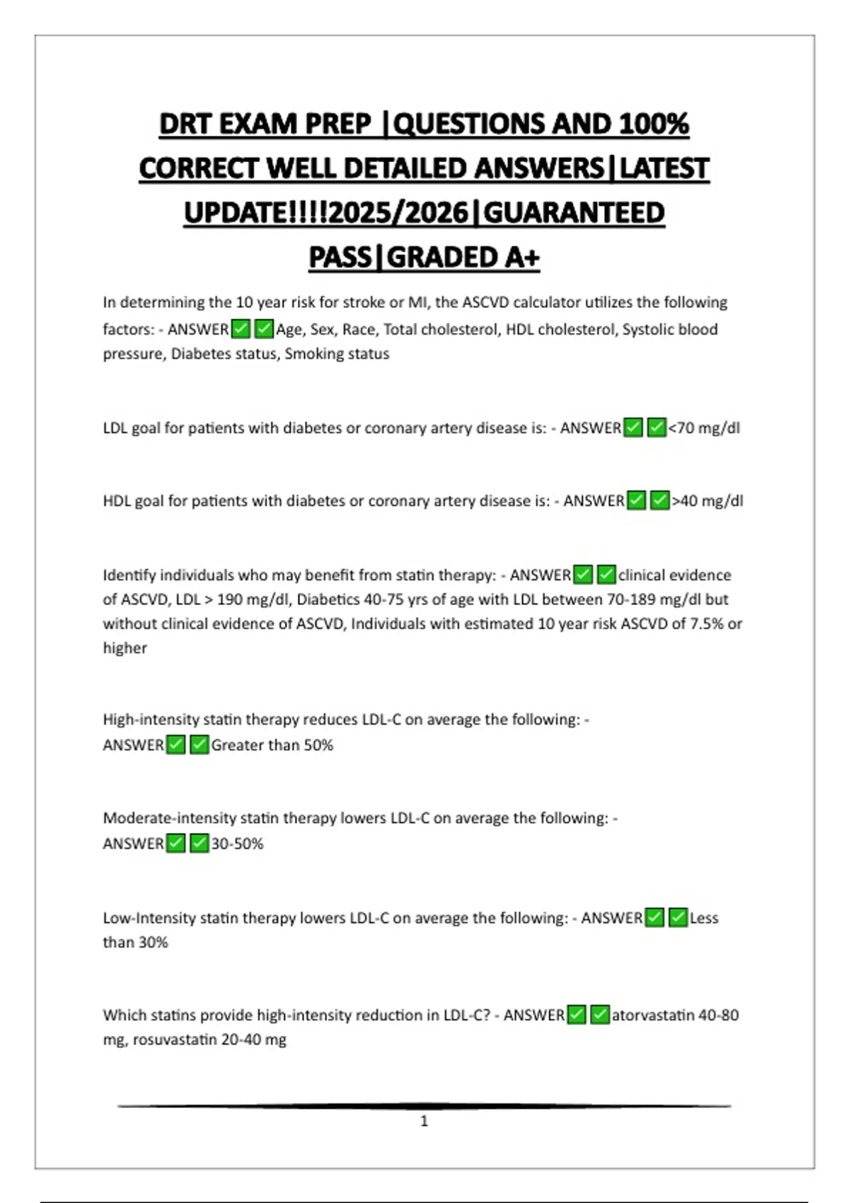 Which statins provide high-intensity reduction in LDL-C? - ANSWER atorvastatin 40-80