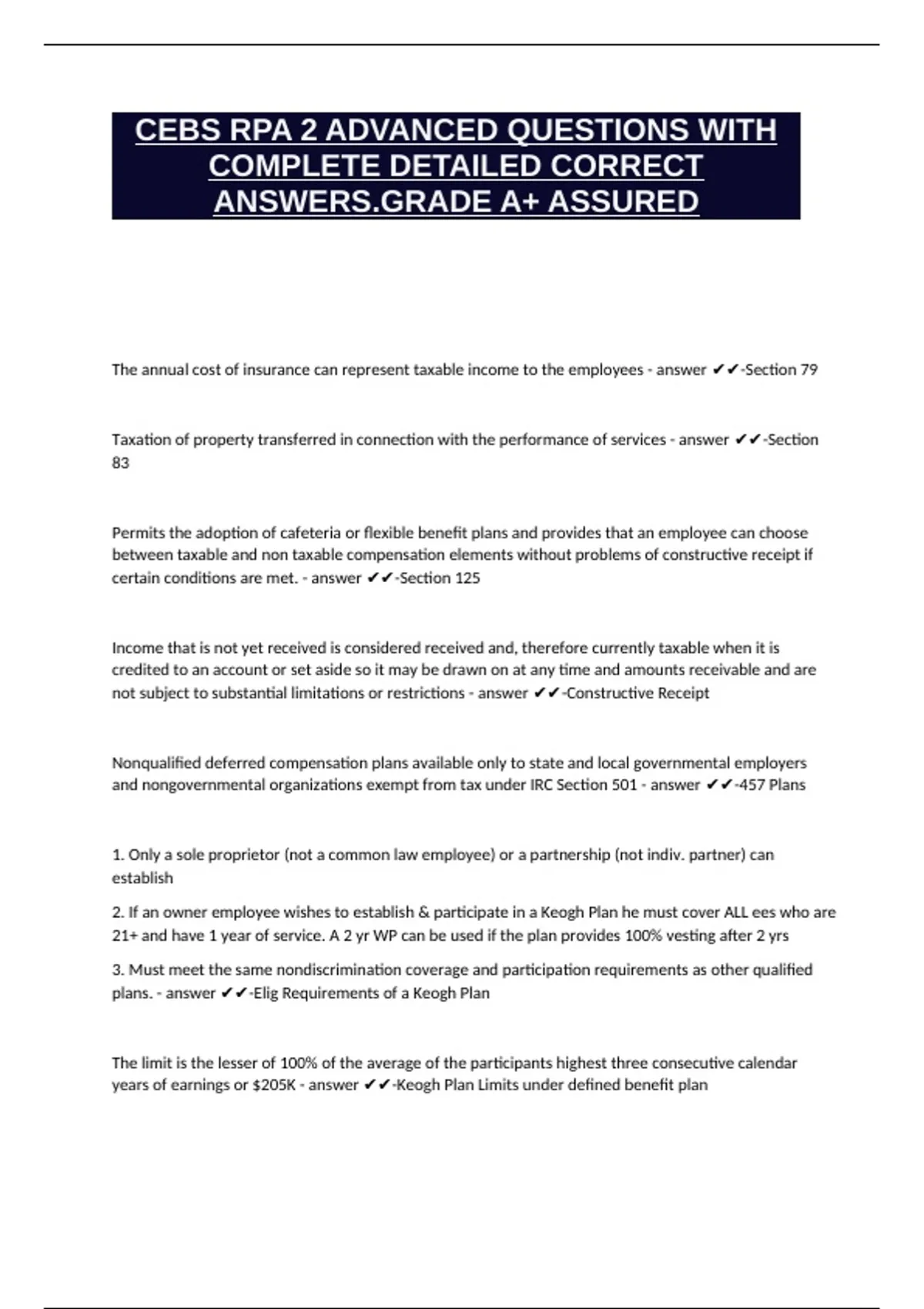 CEBS RPA 2 ADVANCED QUESTIONS WITH COMPLETE DETAILED CORRECT ANSWERS.GRADE A+