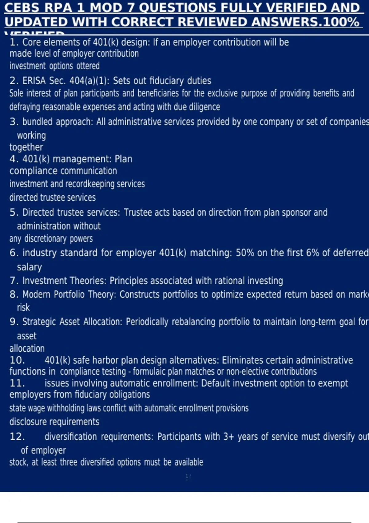 10. 401(k) safe harbor plan design alternatives: Eliminates certain administrative