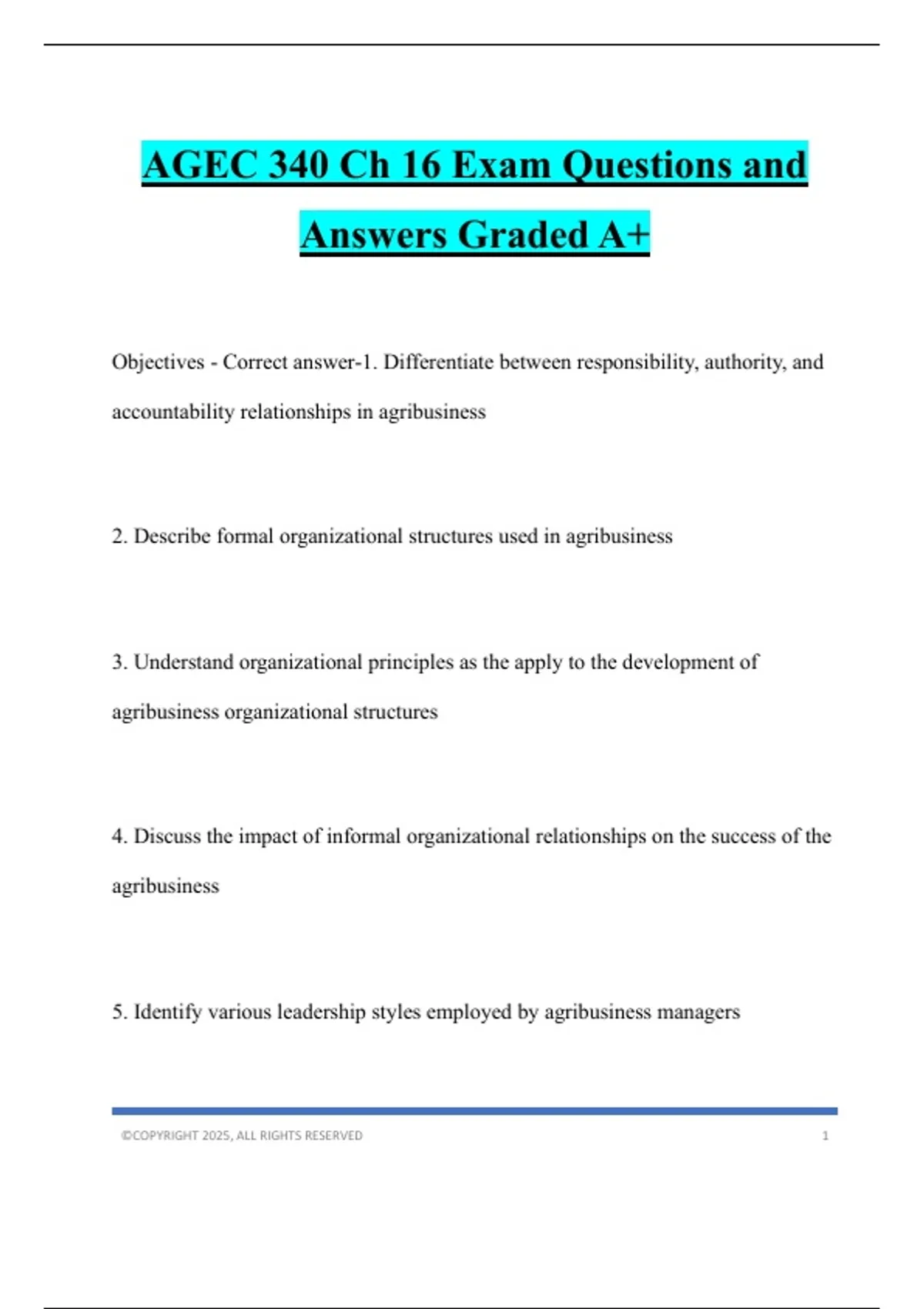 AGEC 340 Ch 16 Exam Questions and Answers Graded A+