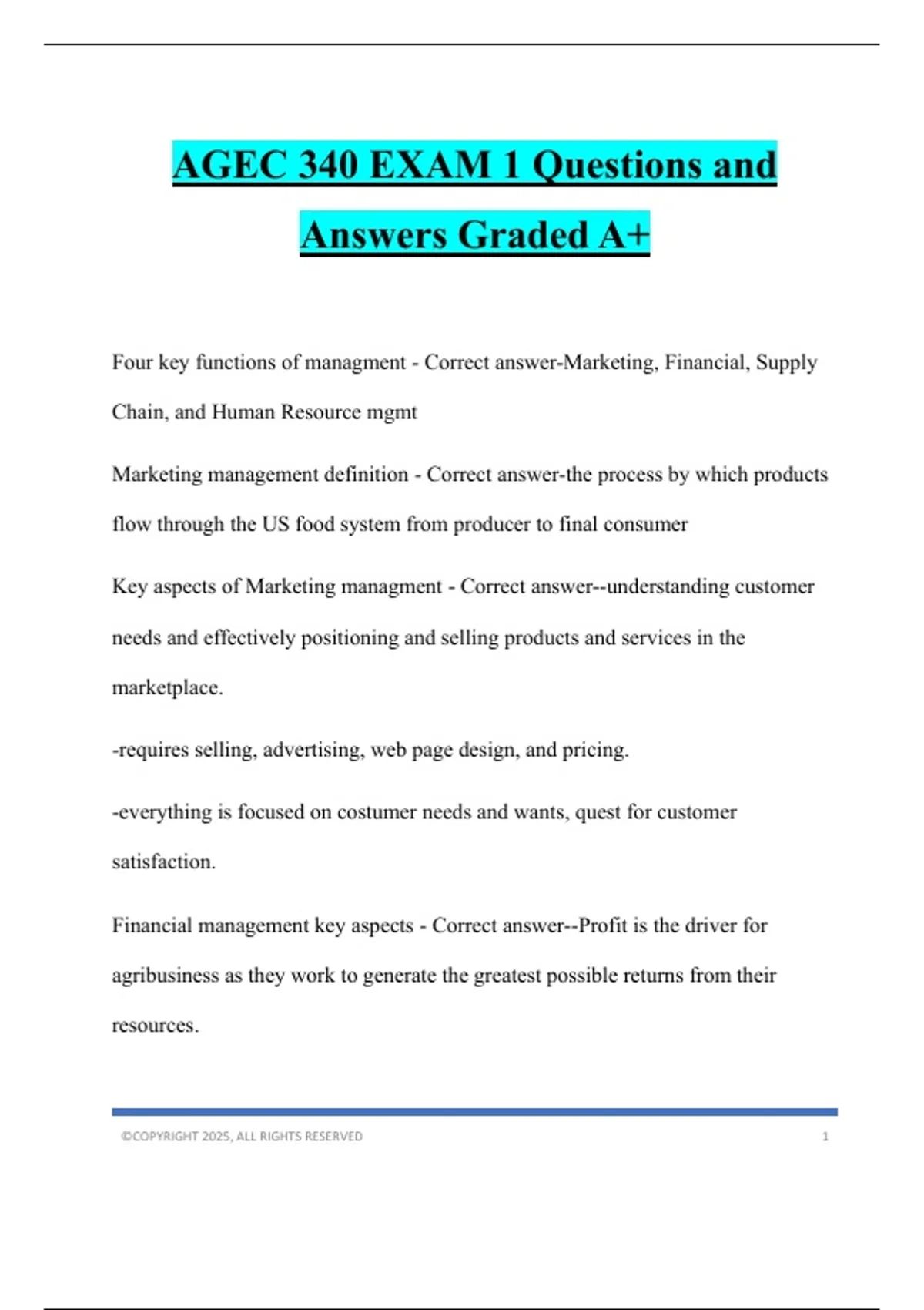 AGEC 340 EXAM 1 Questions and