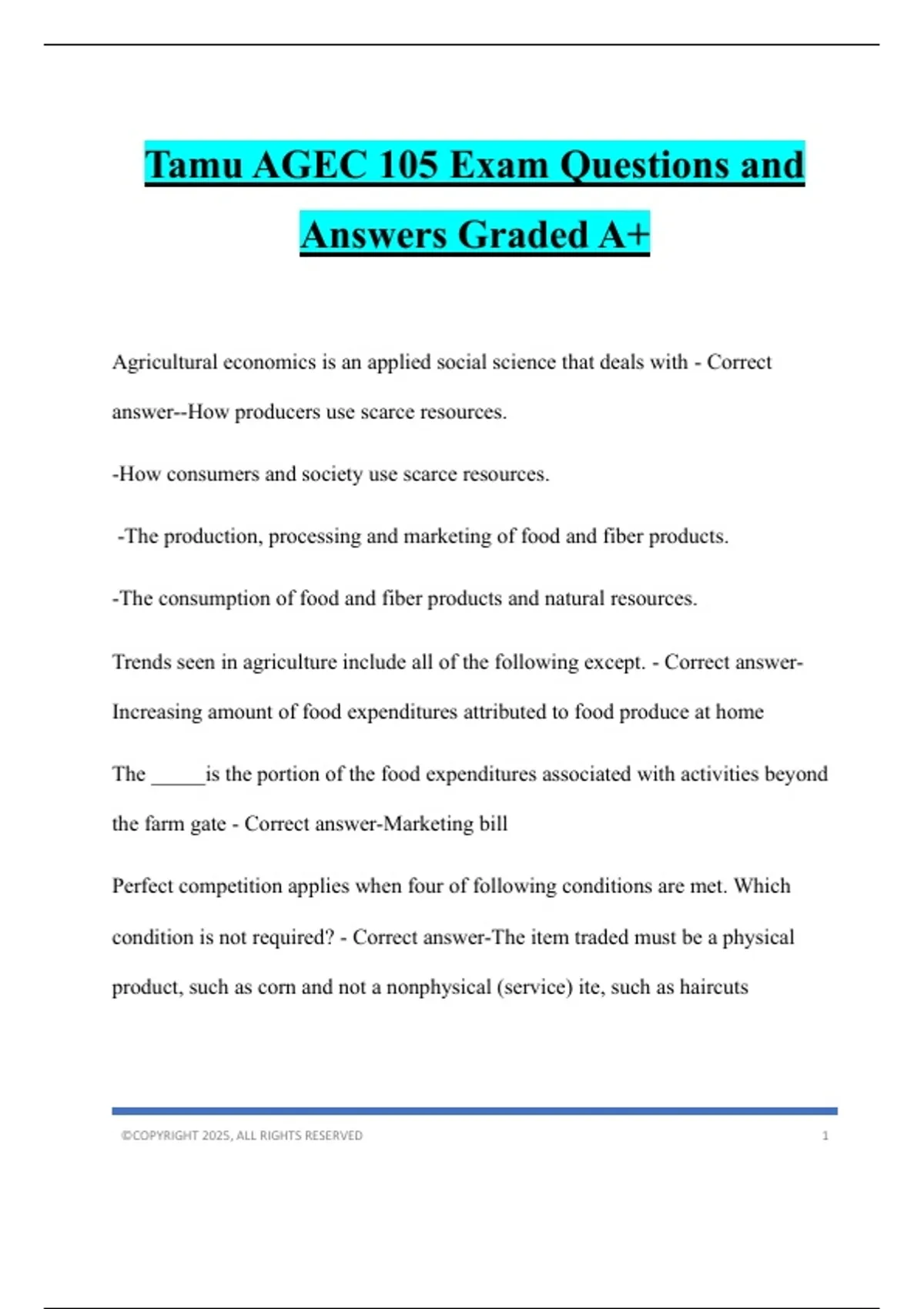 Tamu AGEC 105 Exam Questions and Answers Graded A+