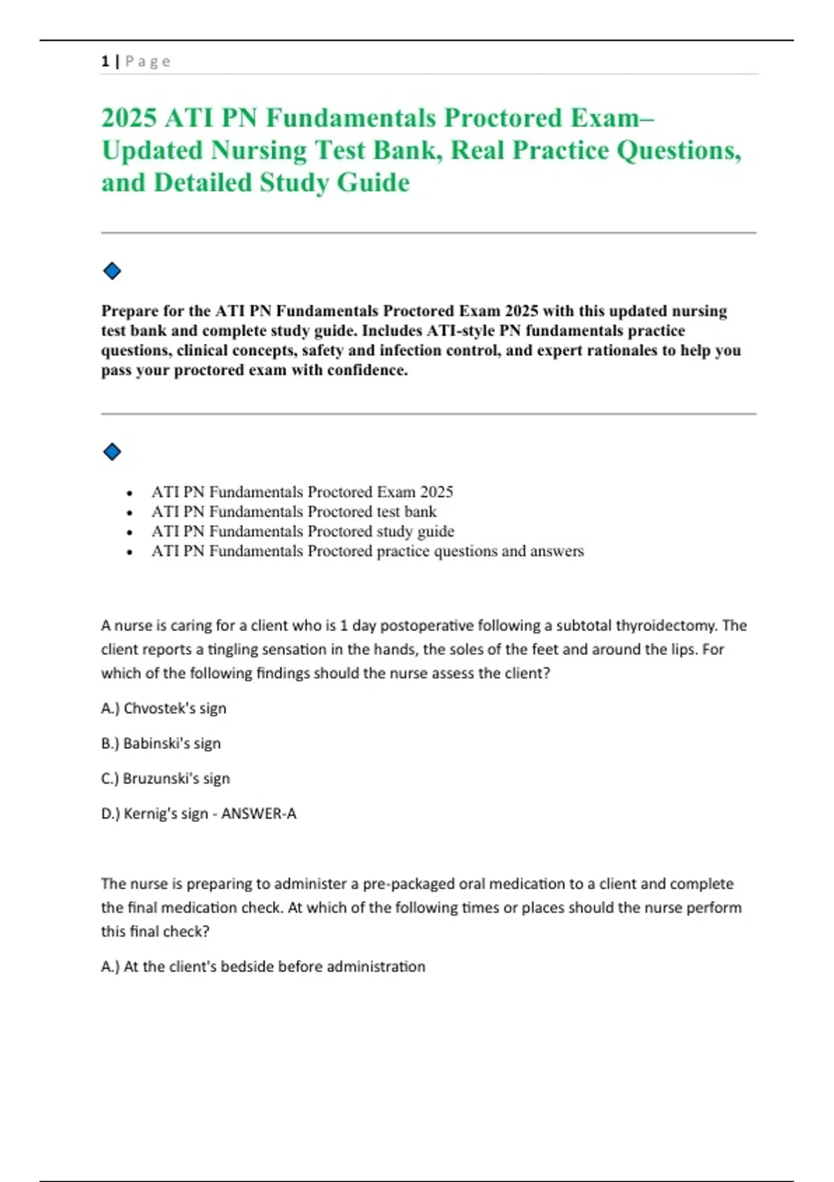 2025 ATI PN Fundamentals Proctored Exam– Updated Nursing Test Bank, Real Practice Questions, and Detailed Study Guide