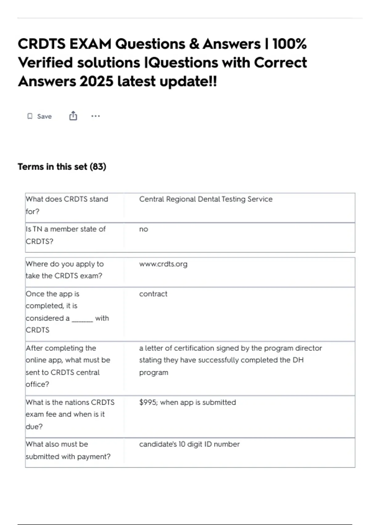 CRDTS EXAM Questions & Answers | 100% Verified solutions |Questions with Correct Answers 2025 latest update!!