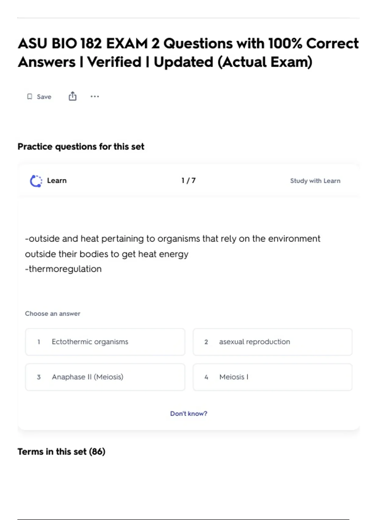 ASU BIO 182 EXAM 2 Questions with 100% Correct